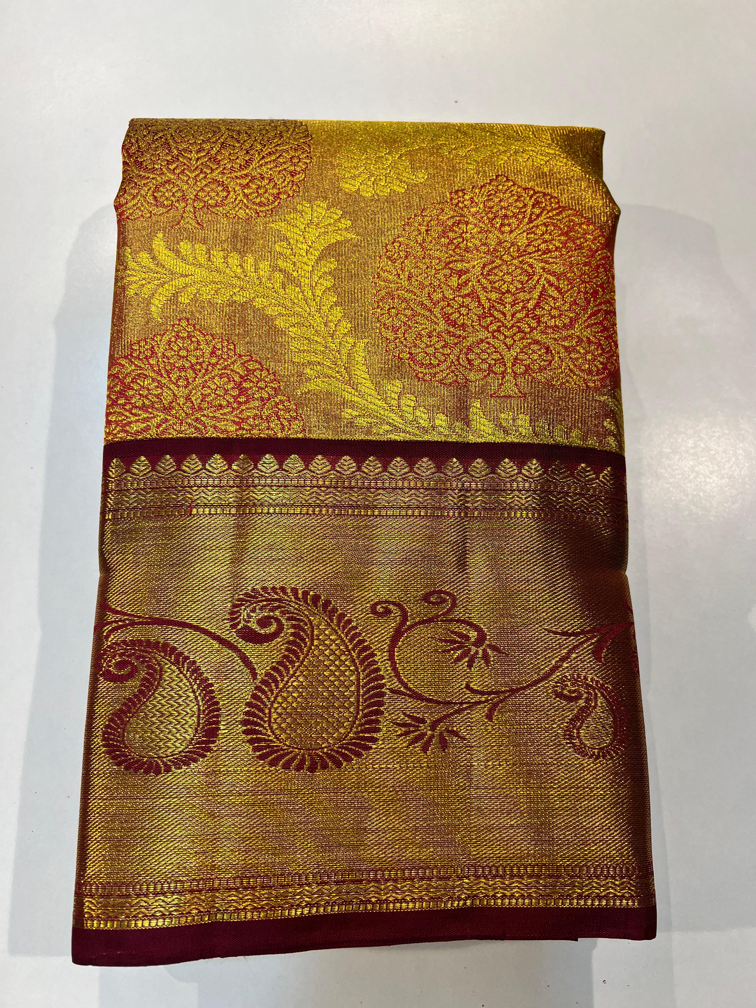 GOLD / REDDISH MAROON  KANCHI SAREE