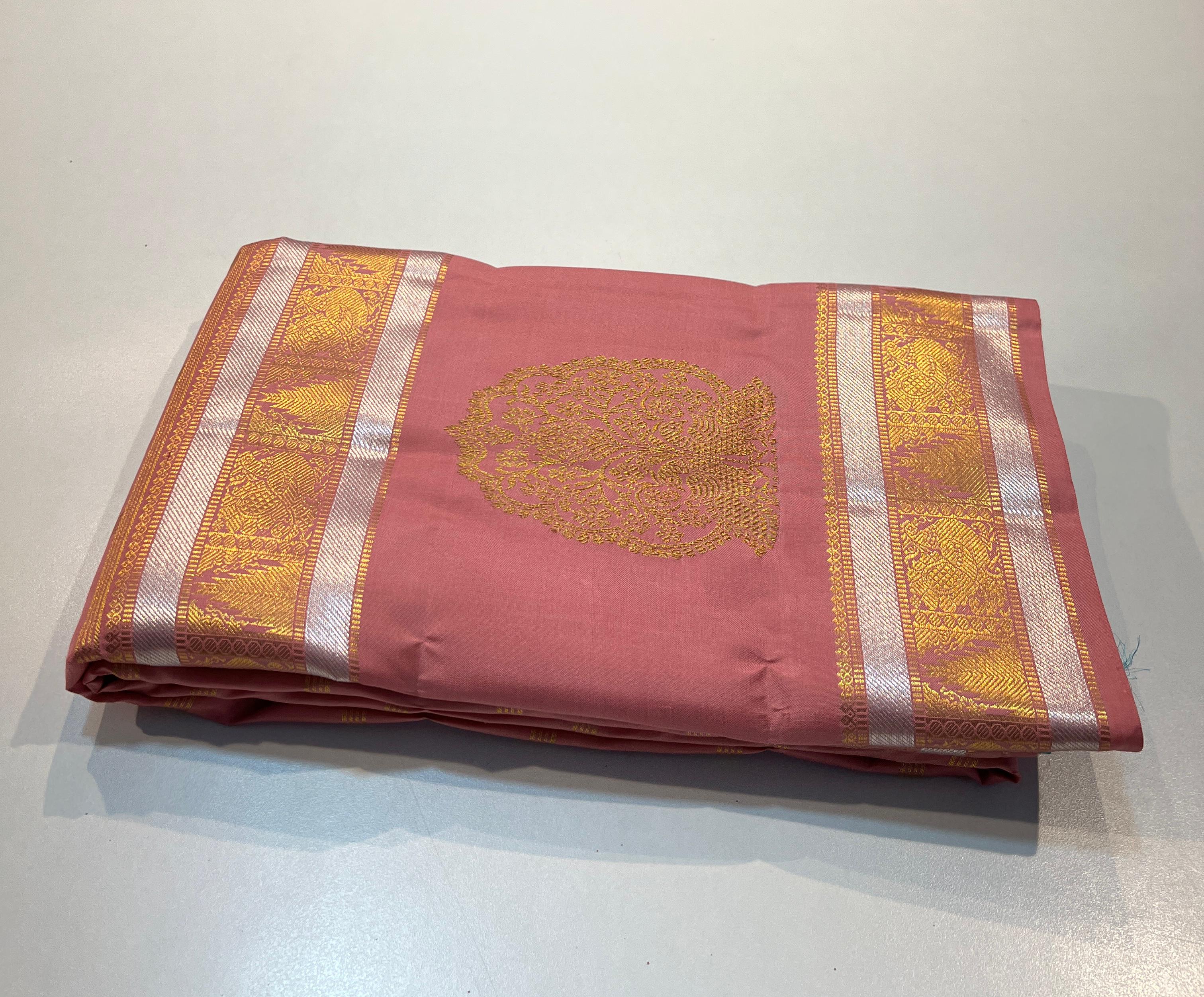 ONION PINK/PASTEL BLUE COLOUR ZARI BORDER COMBITION PURE KANCHI SILK SAREE