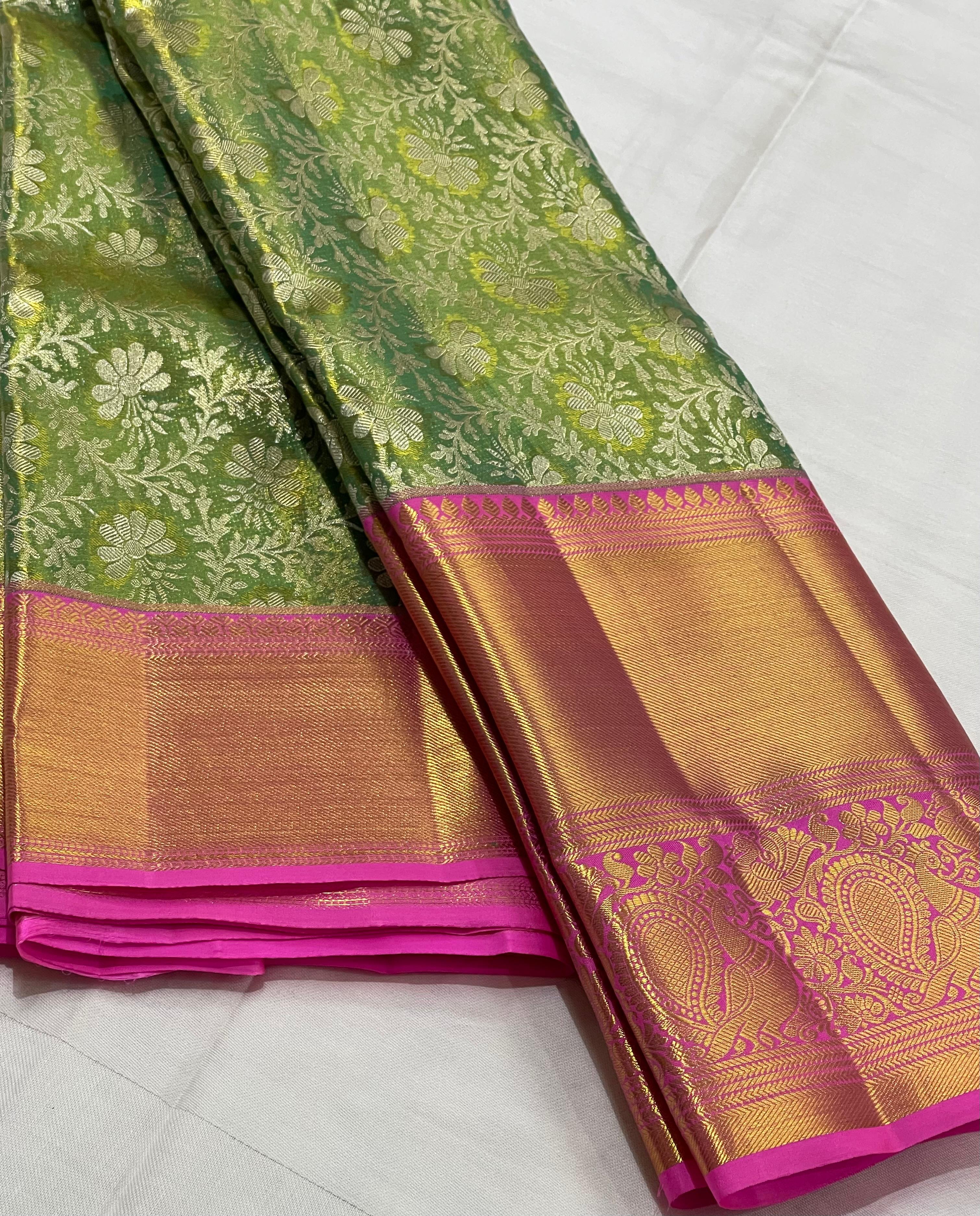 LITE GREEN/RANI PINK BORDER COMBITION PURE KANCHI SILK SAREE