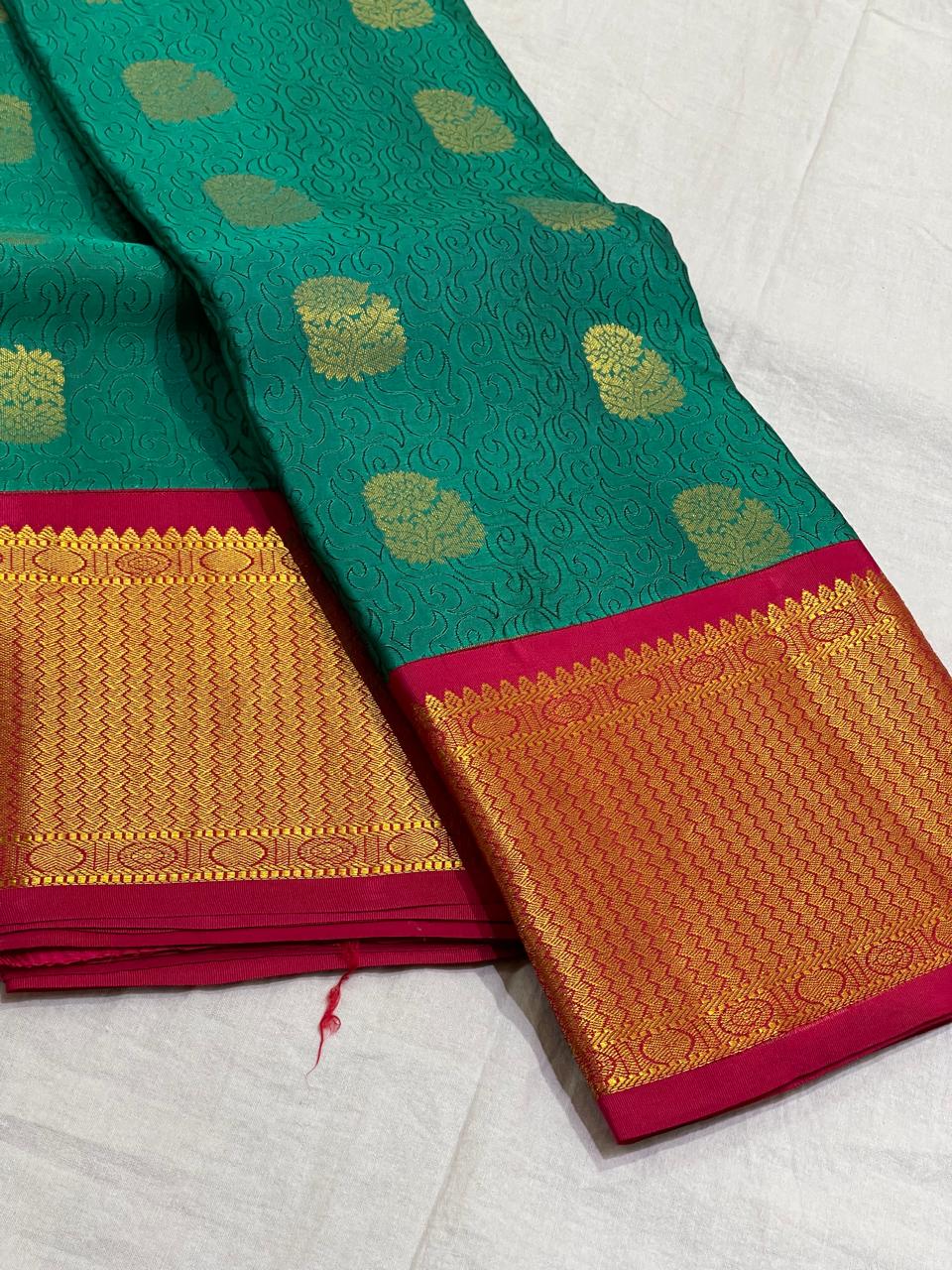 GREEN/RED COLOUR COMBITION PURE KANCHI SILK SAREE
