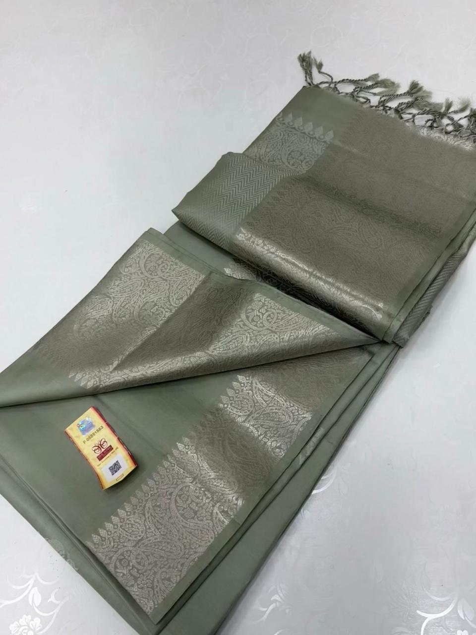 Traditional Kanchi borders with all over saree silver zari buttas with rich pallu and blouse