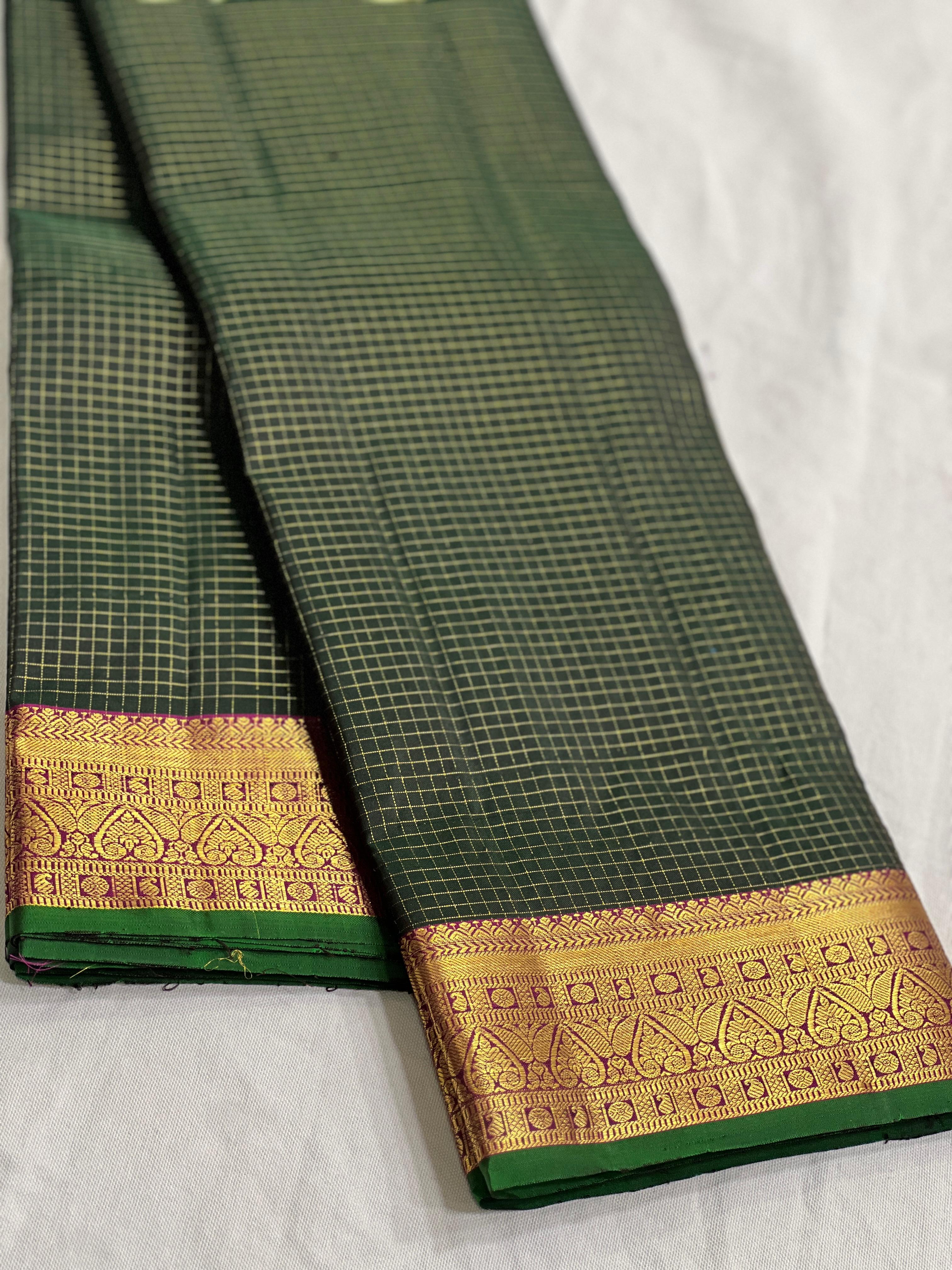 BOTTLE GRREN/PURPLE  COLOUR ZARI COMBINITION PURE SILK SAREES