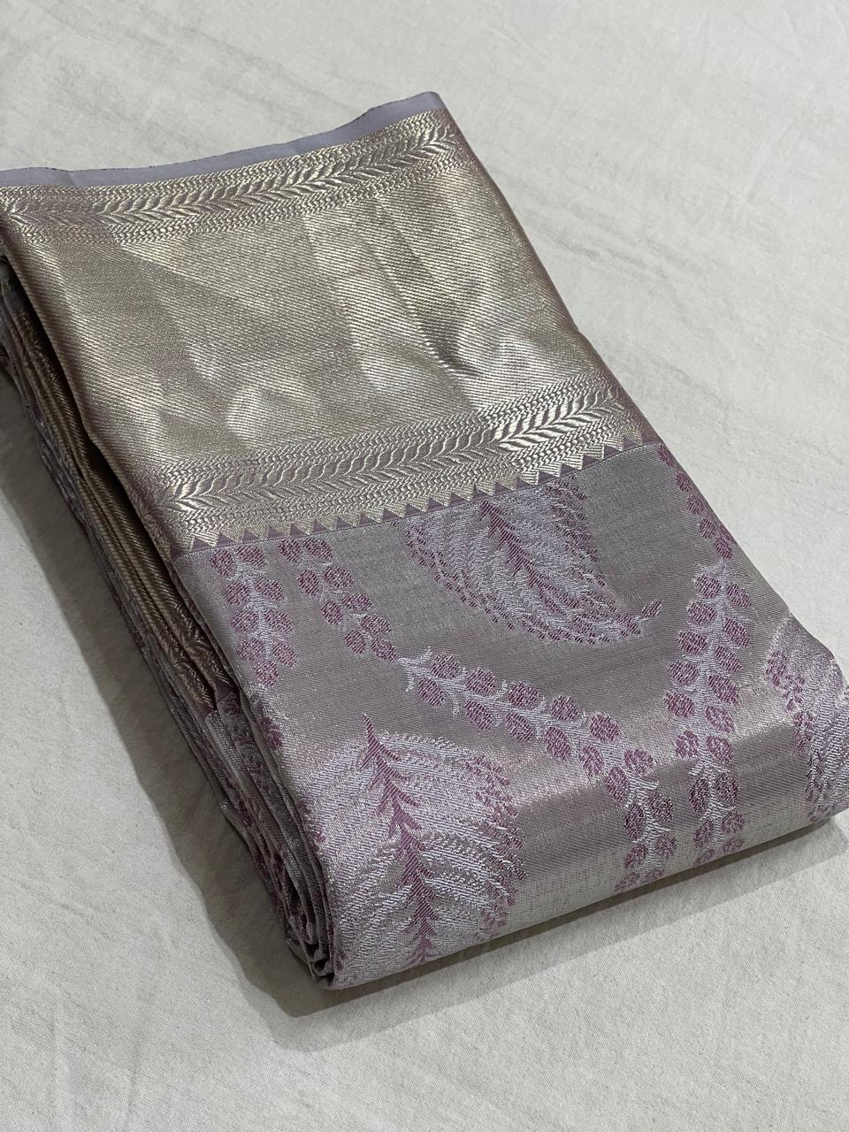 GRAY/ SILVER TEMPLE  SILK SAREE