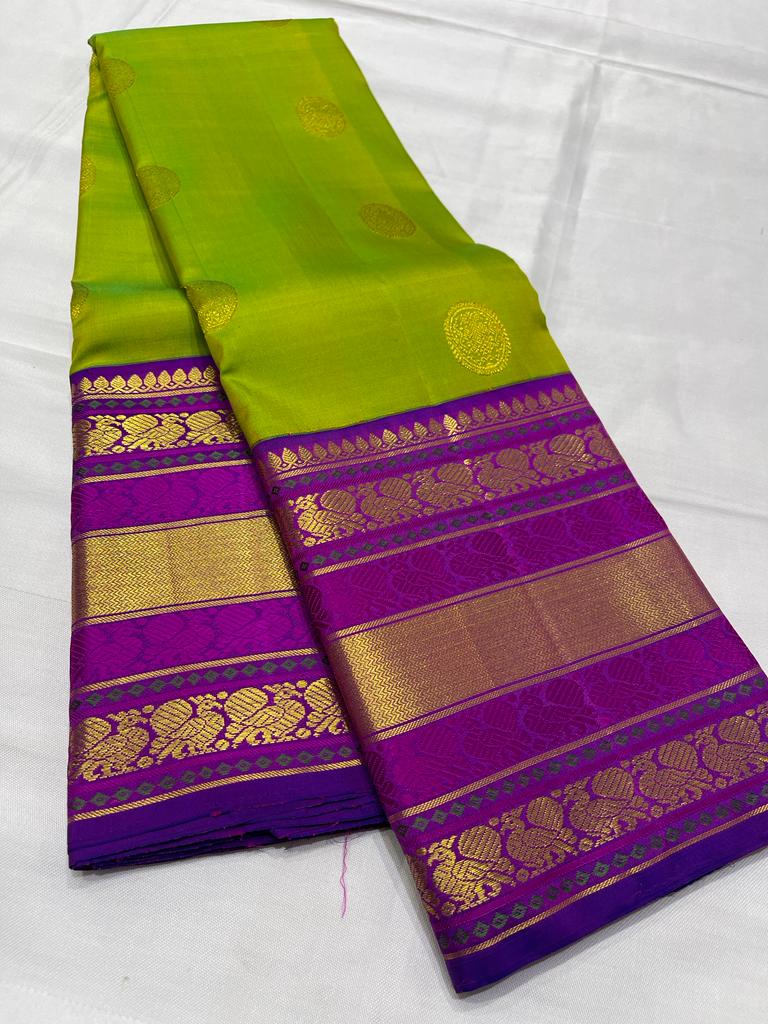 100 % pure kanchi silk saree handloom Double side korvai border ( Kuttu joint border 4 hands...