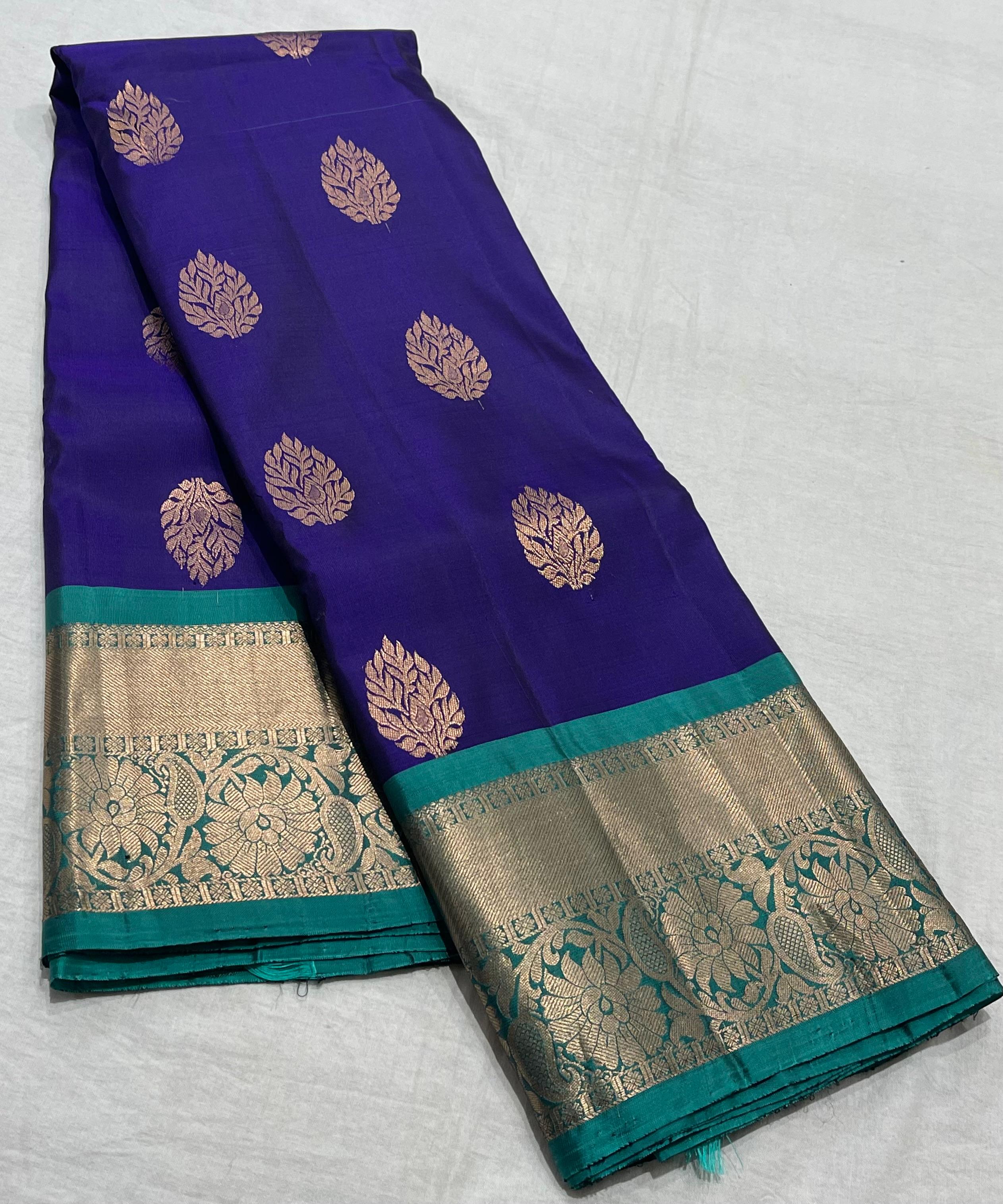 BLUE/RAMA GREEN COLOUR COMBITION PURE KANCHI SILK SAREE