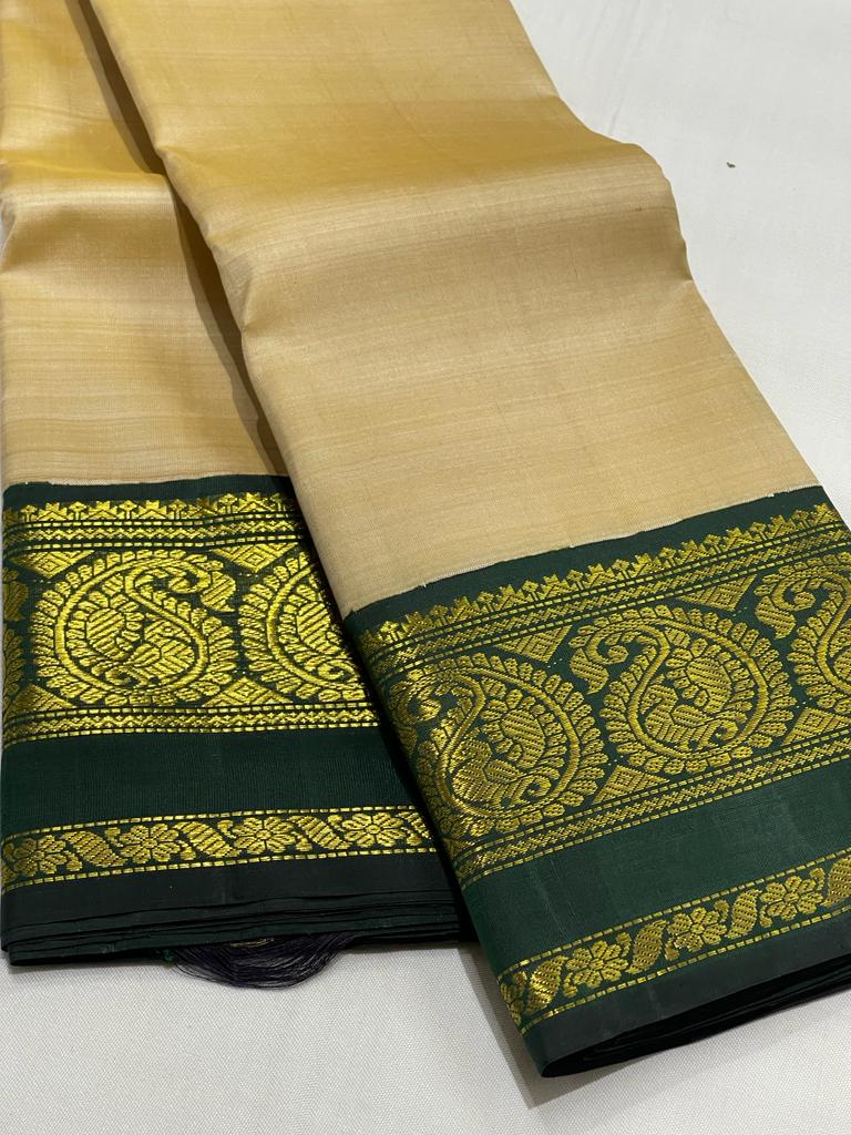 CREAM/BOTTLE GREEN  COMBITION PURE KANCHI SILK SAREE