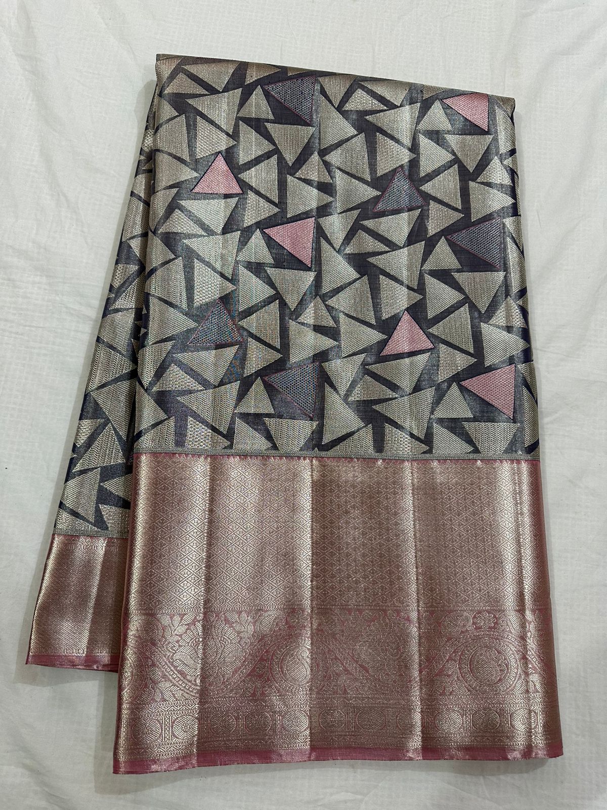 GREY/PEACH BORDER KANCHI TISSUE SAREE