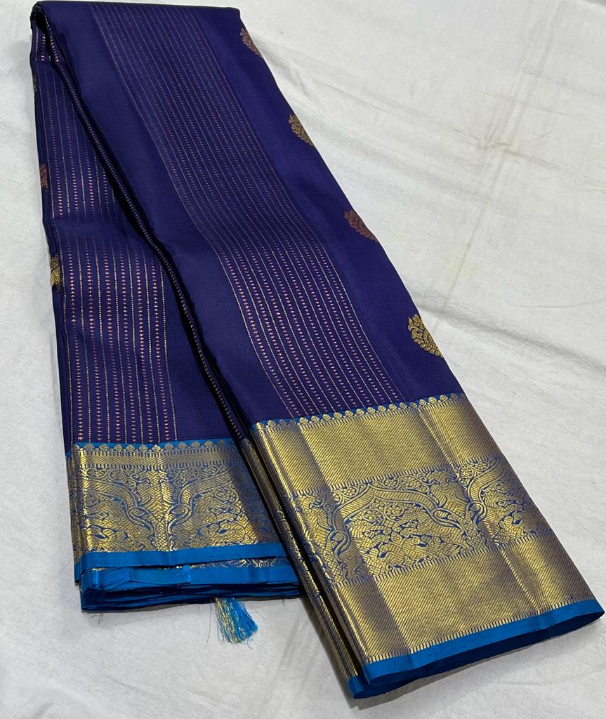 NAVY BLUE/RAMA BLUE  COLOUR  ZARI BORDER COMBITION PURE KANCHI SILK SAREE