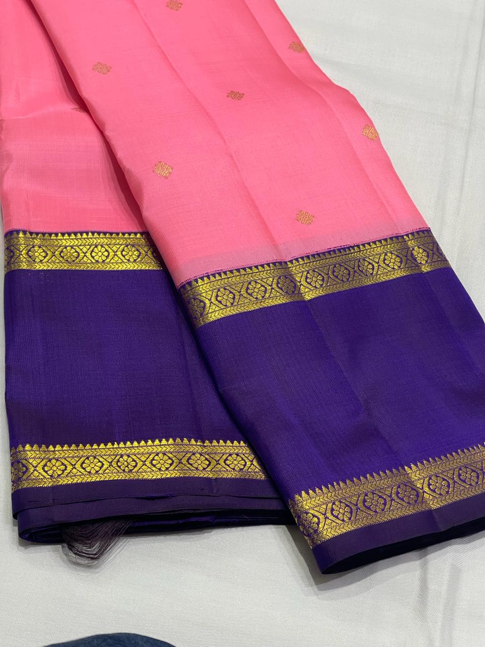 PINK/VOILET COMBITION PURE KANCHI SILK SAREE