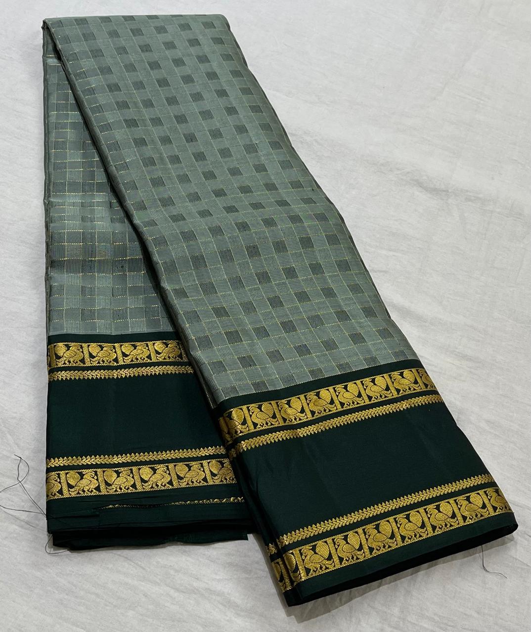 GREY/BOTTLE GREEN  COLOUR COMBITION PURE KANCHI SILK SAREE