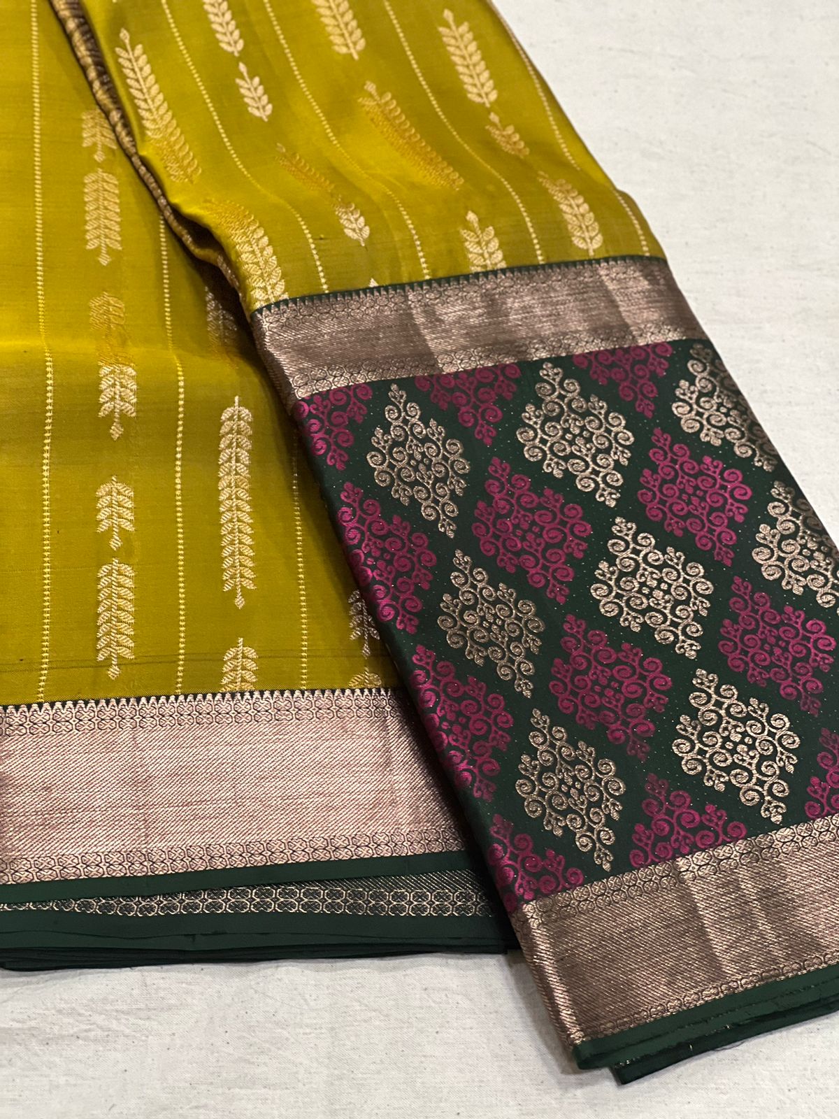 MUSTARD GREEN KANCHI SAREE