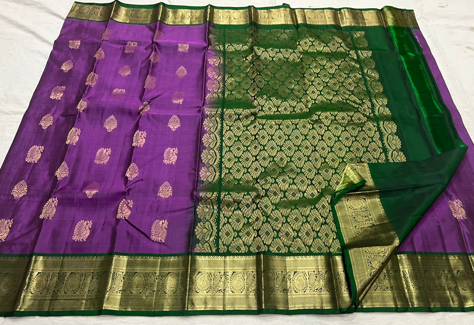 MAGENTA / GREEN KANCHI SAREE