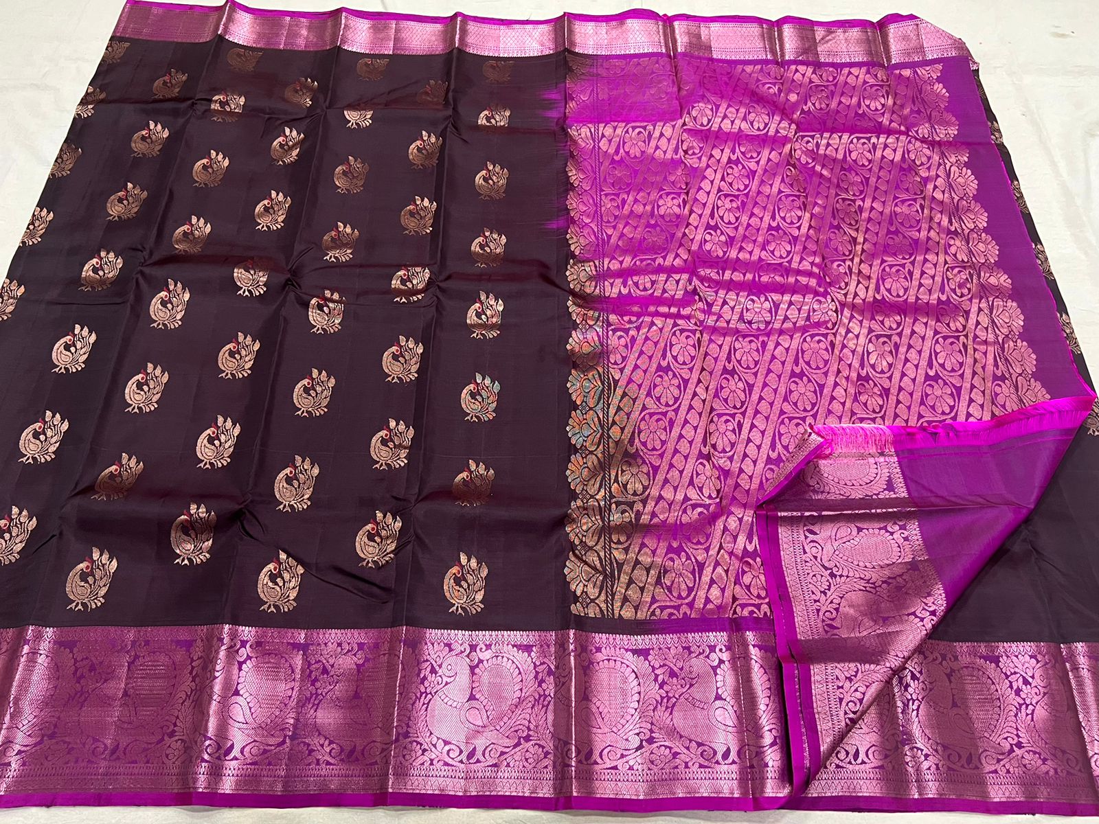 100% PURE KANCHI SILK SAREE WITH SILK MARK TAG Grand Pallu,Plain blouse,Kanchipuram Handwoven
