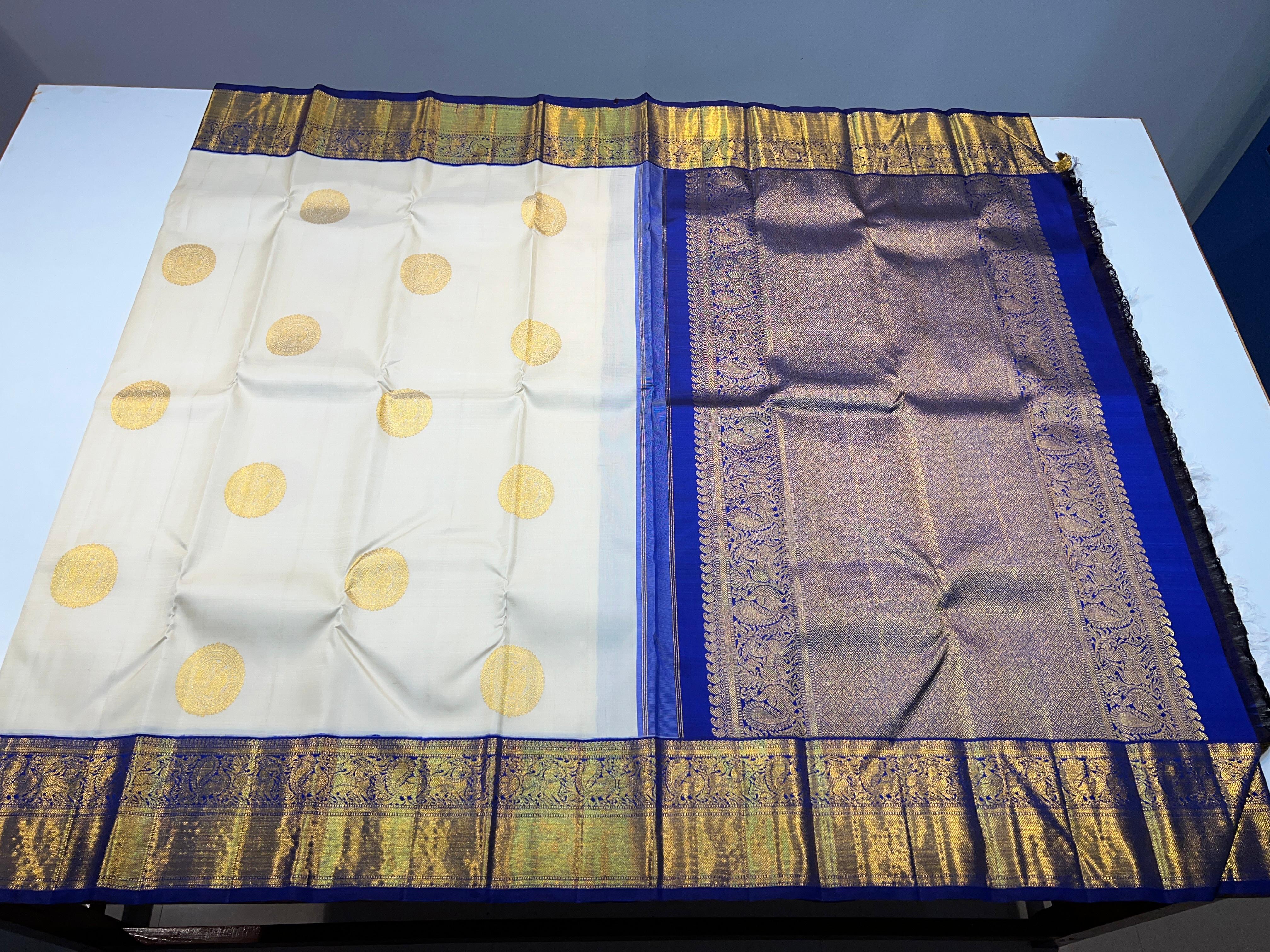 HALF WHITE / ROYAL BLUE KANCHI SAREE