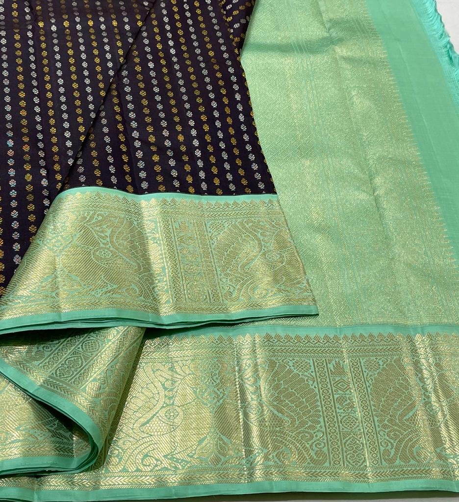 BLACK / GREEN BUTTI'S KANCHI SAREE