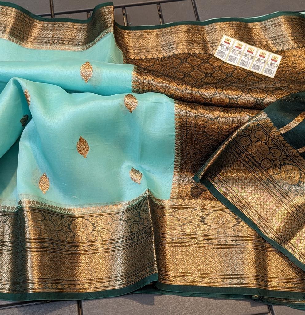 Kora organza *Pure Handloom bana kora*Silk saree with antique zari rich Pallu*Blouse with Border*Smooth & soft fabric*With...