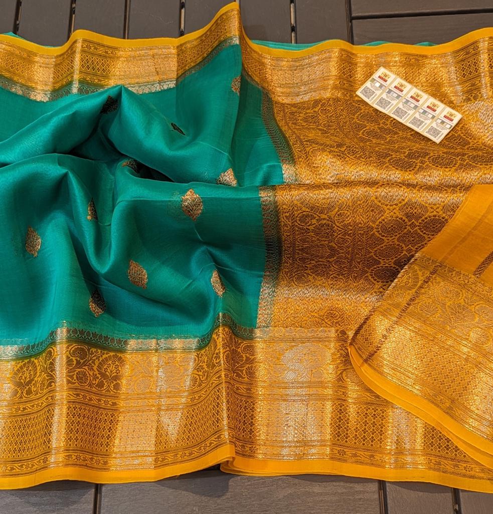 Kora organza *Pure Handloom bana kora*Silk saree with antique zari rich Pallu*Blouse with Border*Smooth & soft fabric*With...