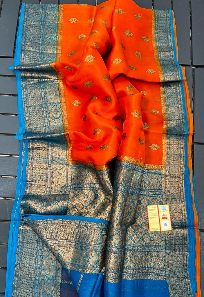 ORANGE / BLUE KORA ORGANZA SILK