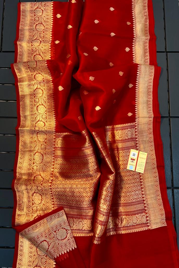 Kora organza *Pure Handloom bana kora*Silk saree with antique zari rich Pallu*Blouse with Border*Smooth & soft fabric*With...