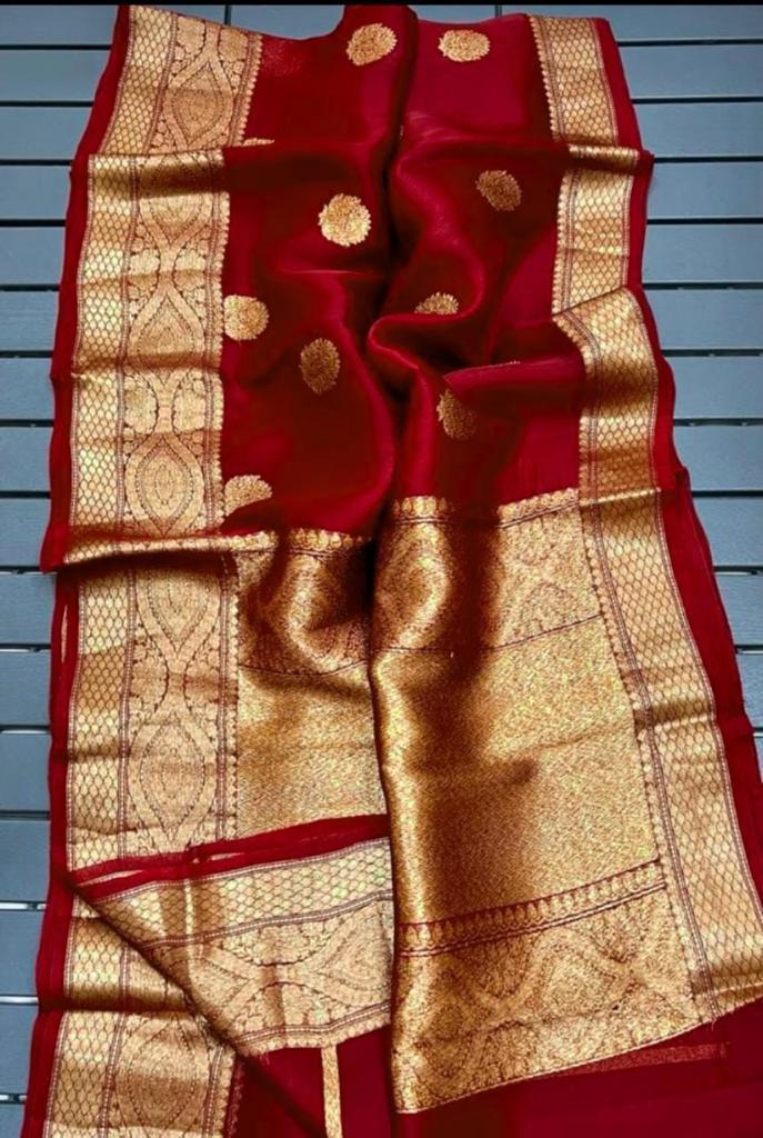 Kora organza *Pure Handloom bana kora*Silk saree with antique zari rich Pallu*Blouse with Border*Smooth & soft fabric*With...