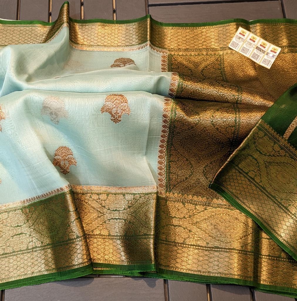POWDER BLUE / GREEN KORA ORGANZA SILK