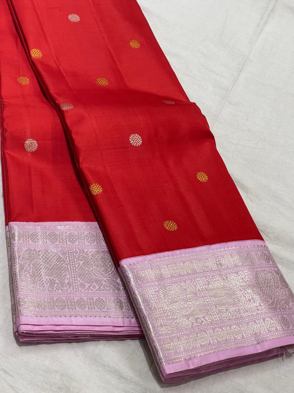 RED/BABY PINK  COLOUR COMBITION PURE KANCHI SILK SAREE