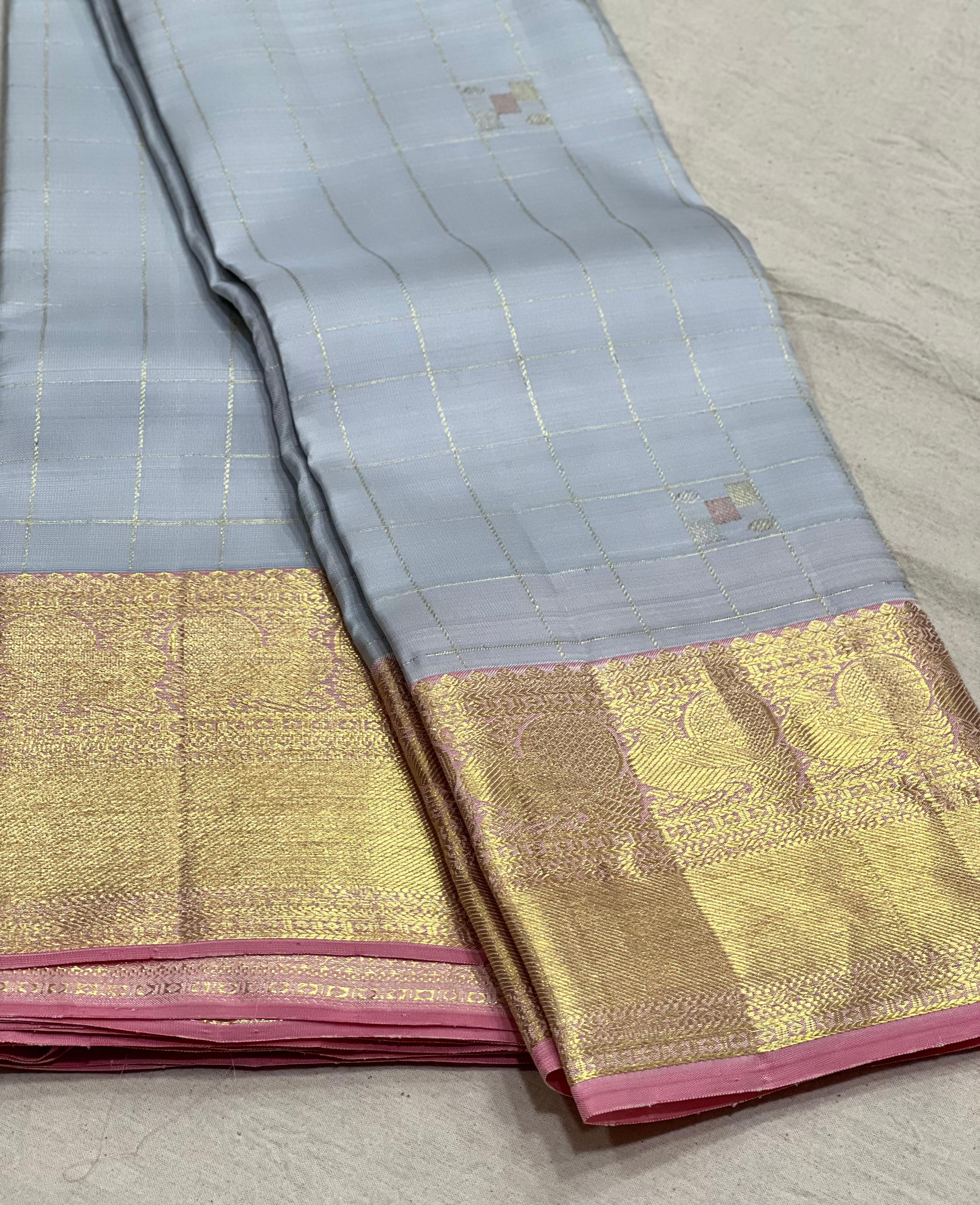 LITE SKY BLUE/LILAC BORDER COMBITION PURE KANCHI SILK SAREE