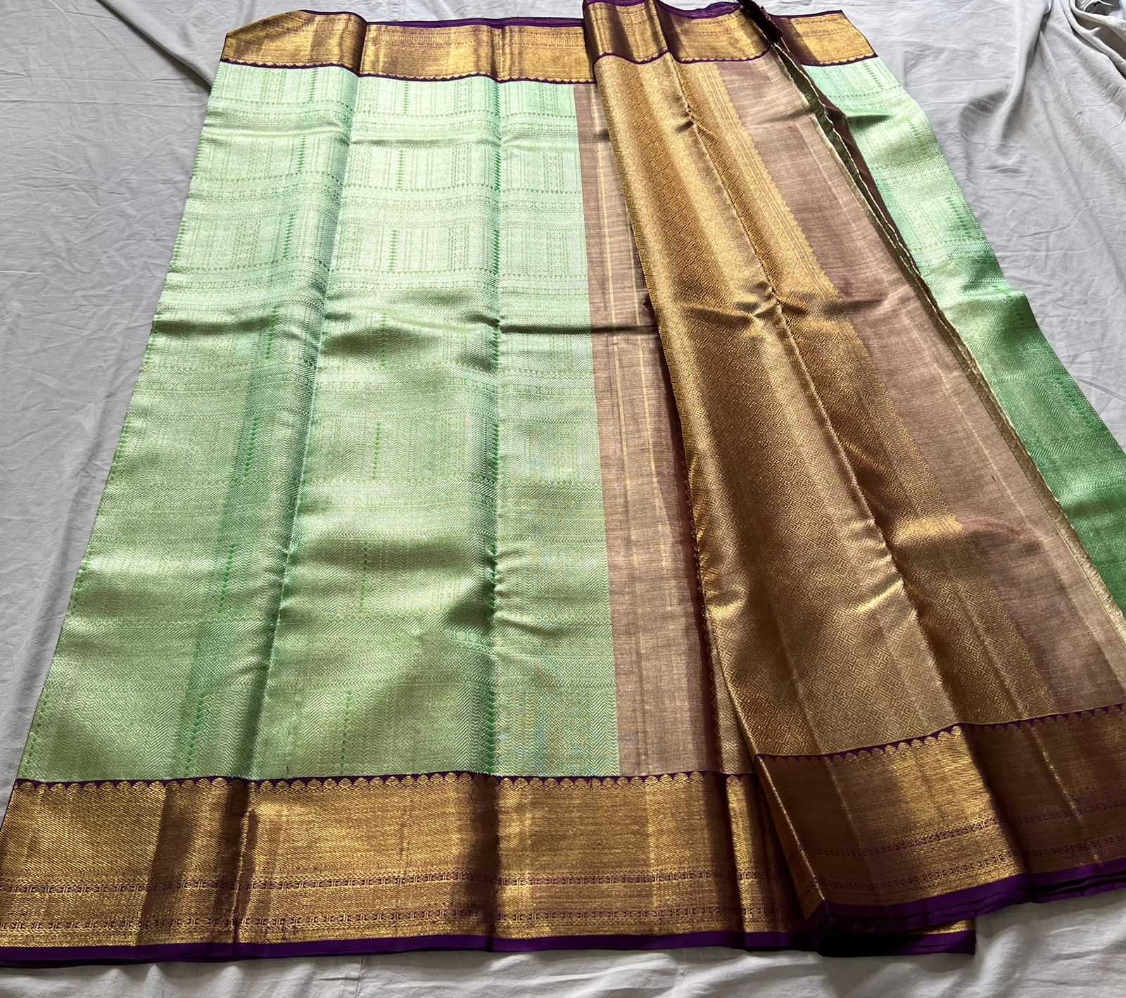 SEA GREEN /MAROON COLOUR COMBITION PURE KANCHI SILK SAREE