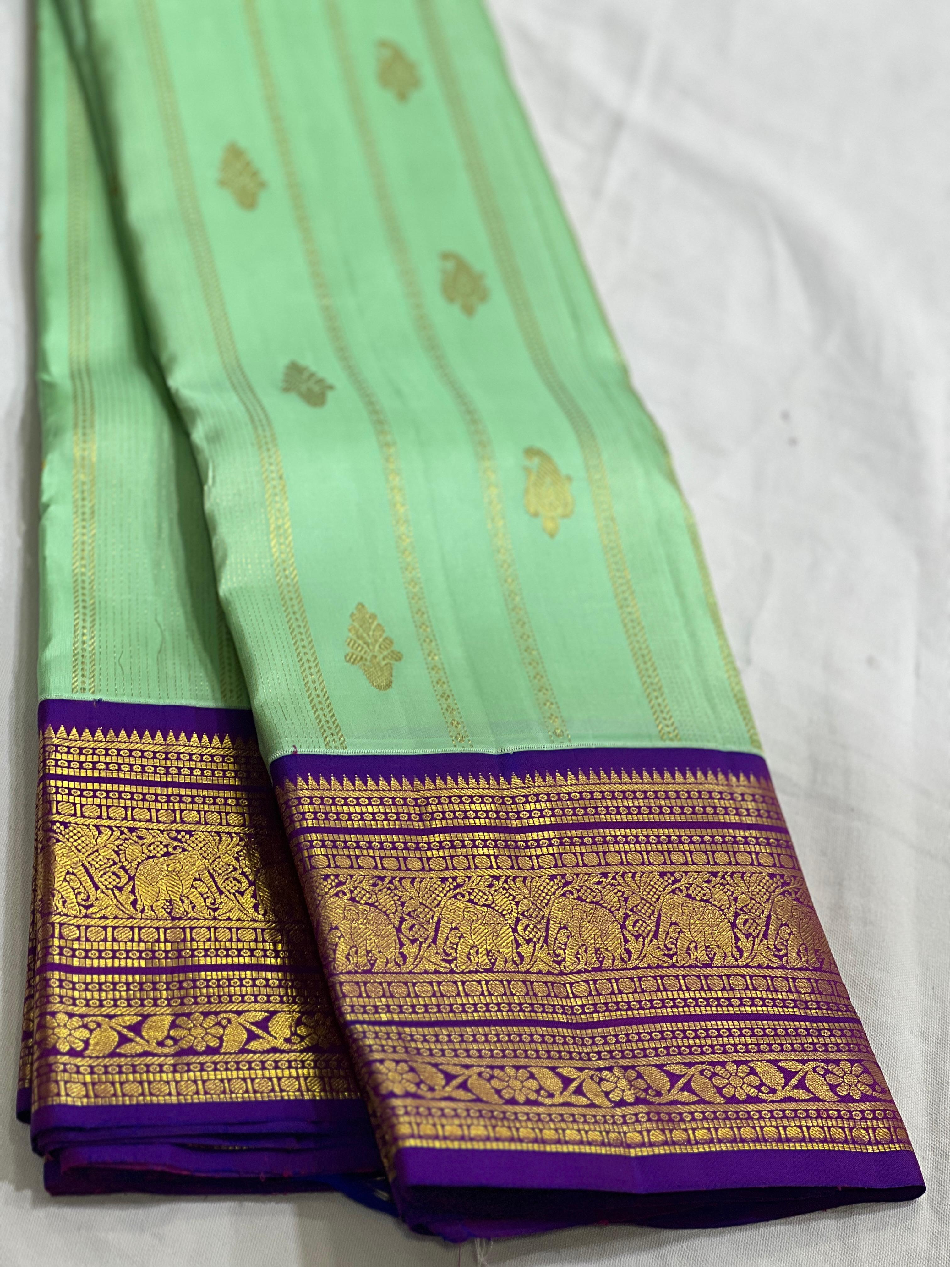 LITE PISTA GREEN/PURPLE COLOUR ZARI COMBINITION PURE SILK SAREES