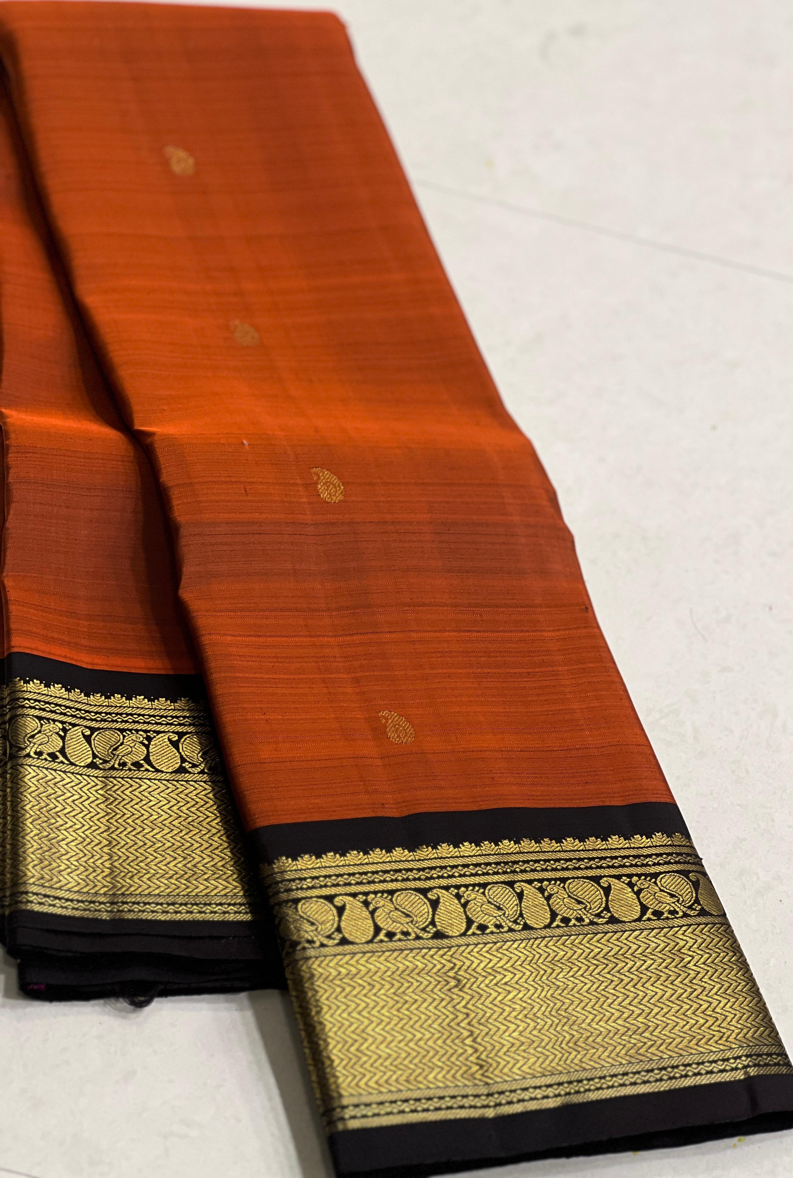 DARK ORANGE /BLACK BORDER COMBITION PURE KANCHI SILK SAREE