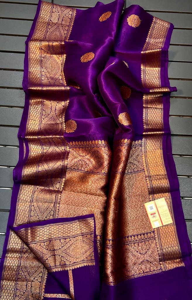Kora organza *Pure Handloom bana kora*Silk saree with antique zari rich Pallu*Blouse with Border*Smooth & soft fabric*With...