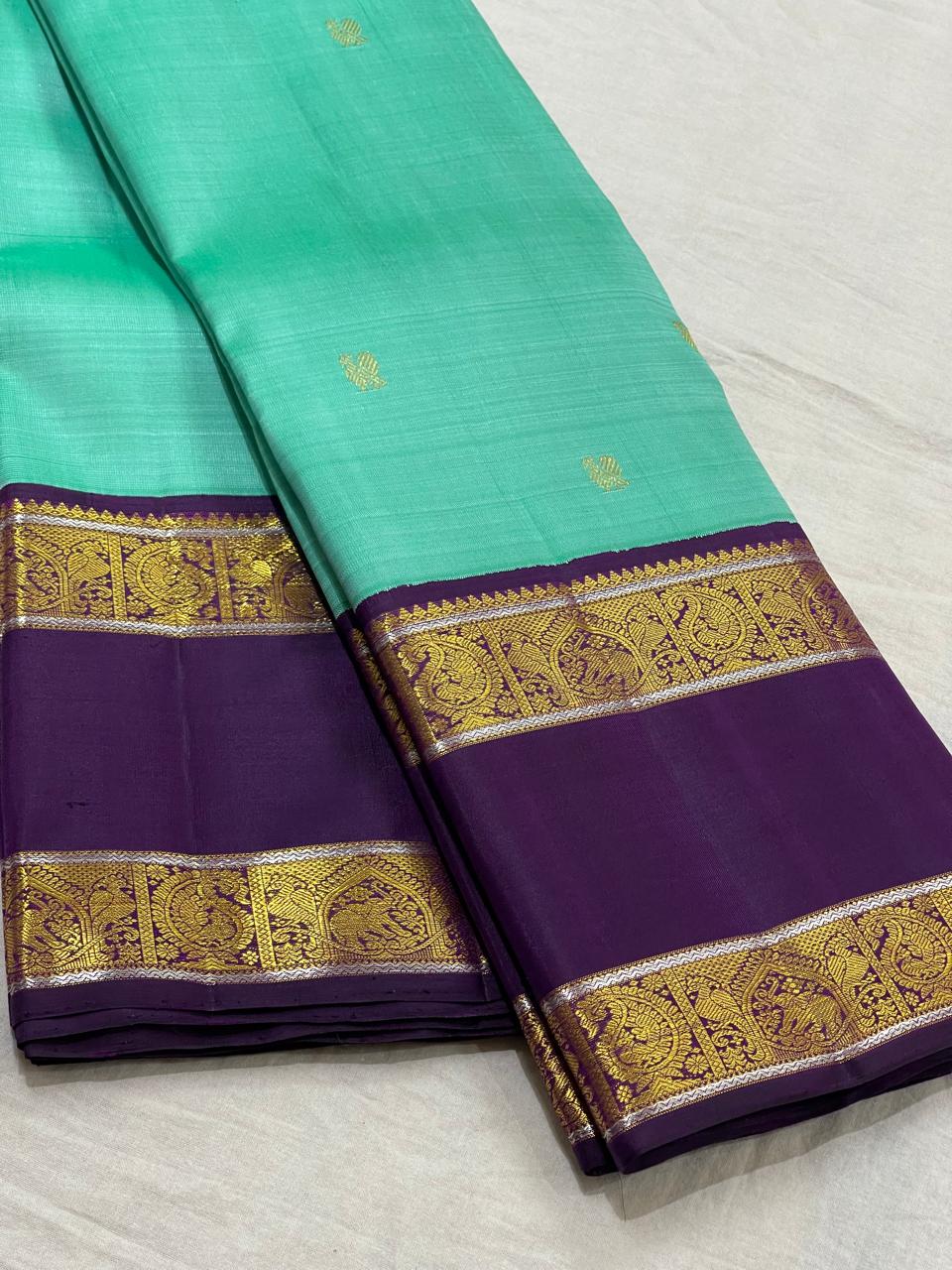 TURQUISE BLUE/MGENTA PINK COLOUR COMBITION PURE KANCHI SILK SAREE