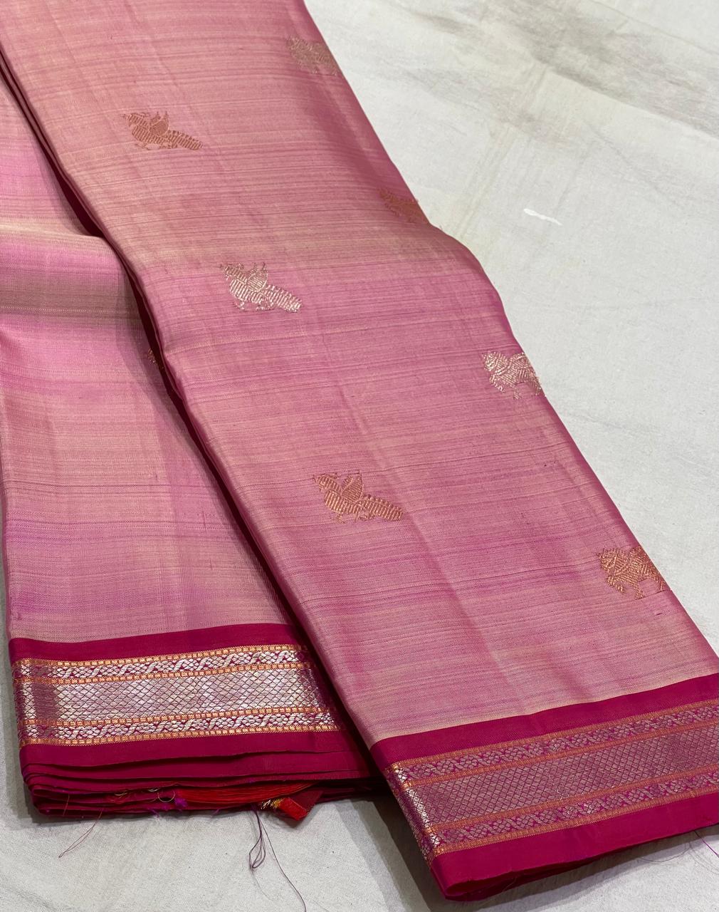 PEACH/MAGENTA PINK COMBITION PURE KANCHI SILK SAREE