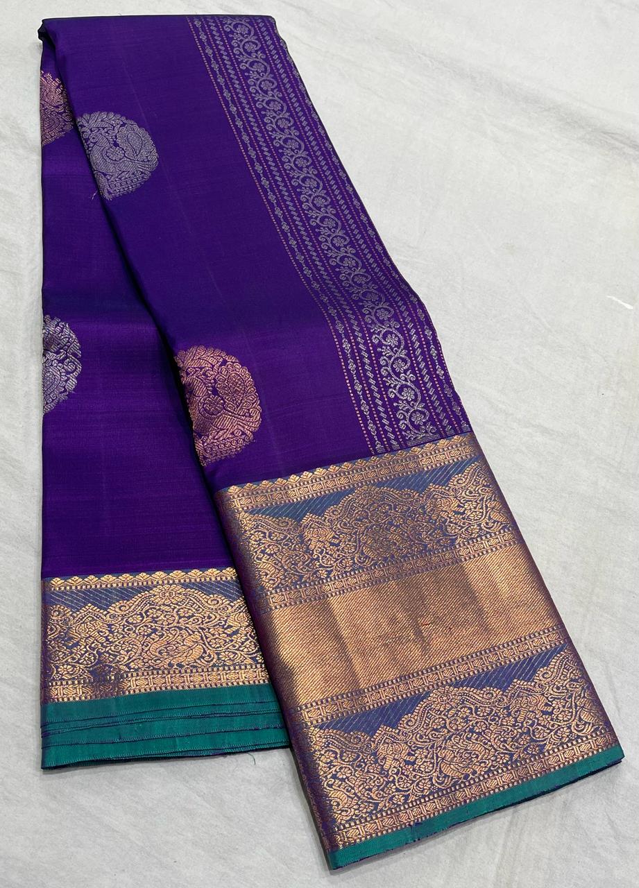 VOILET/RAMA GREEN  COMBITION PURE KANCHI SILK SAREE
