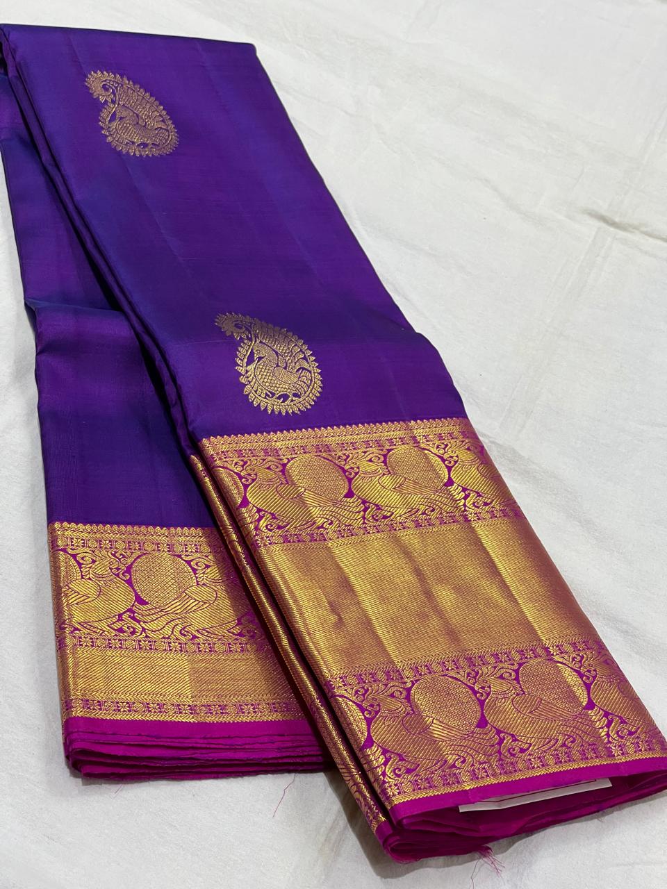 PURPLE/PINK COLOUR COMBITION PURE KANCHI SILK SAREE
