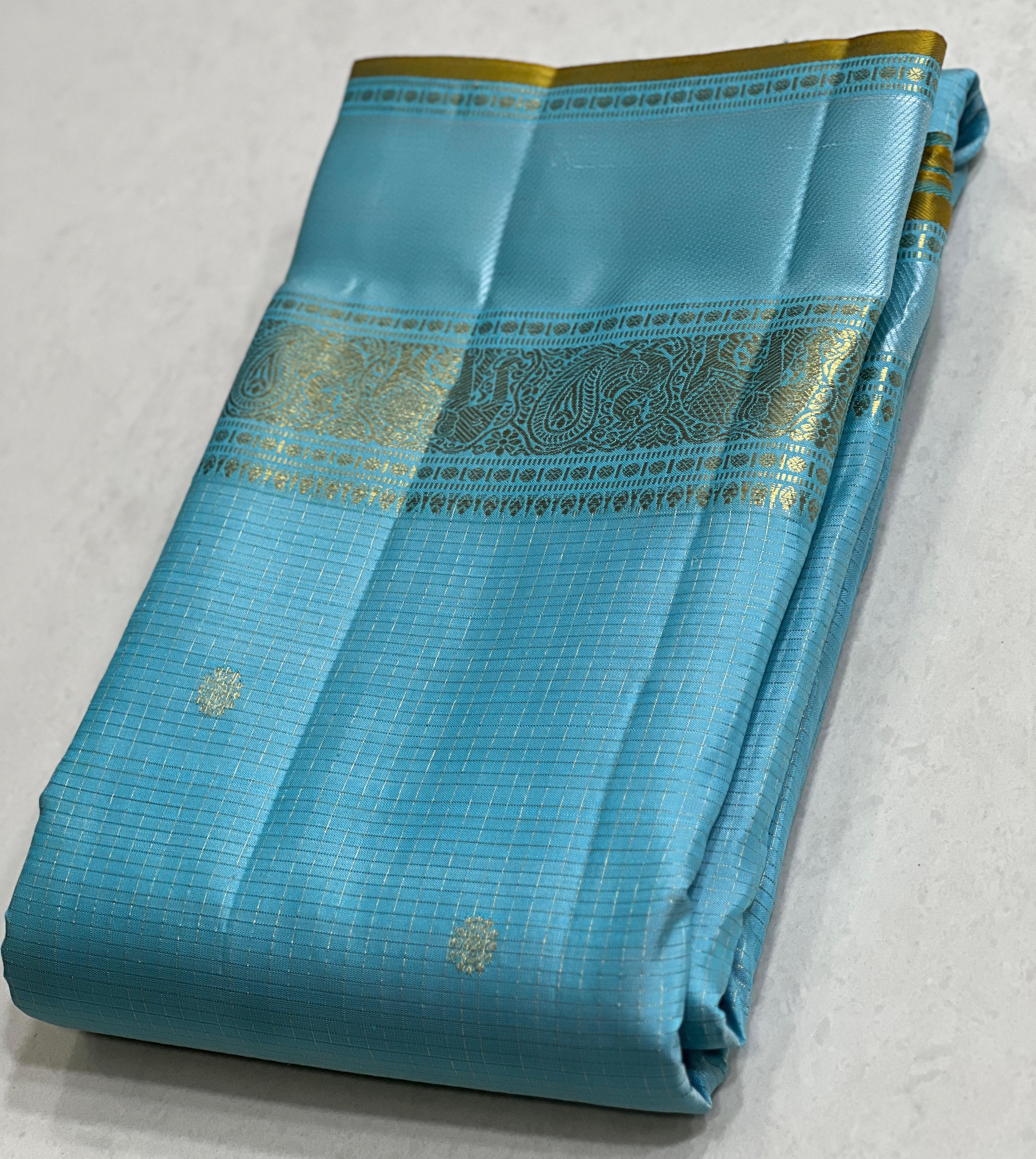 LIGHTBLUE\GOLD BORDER SAREE