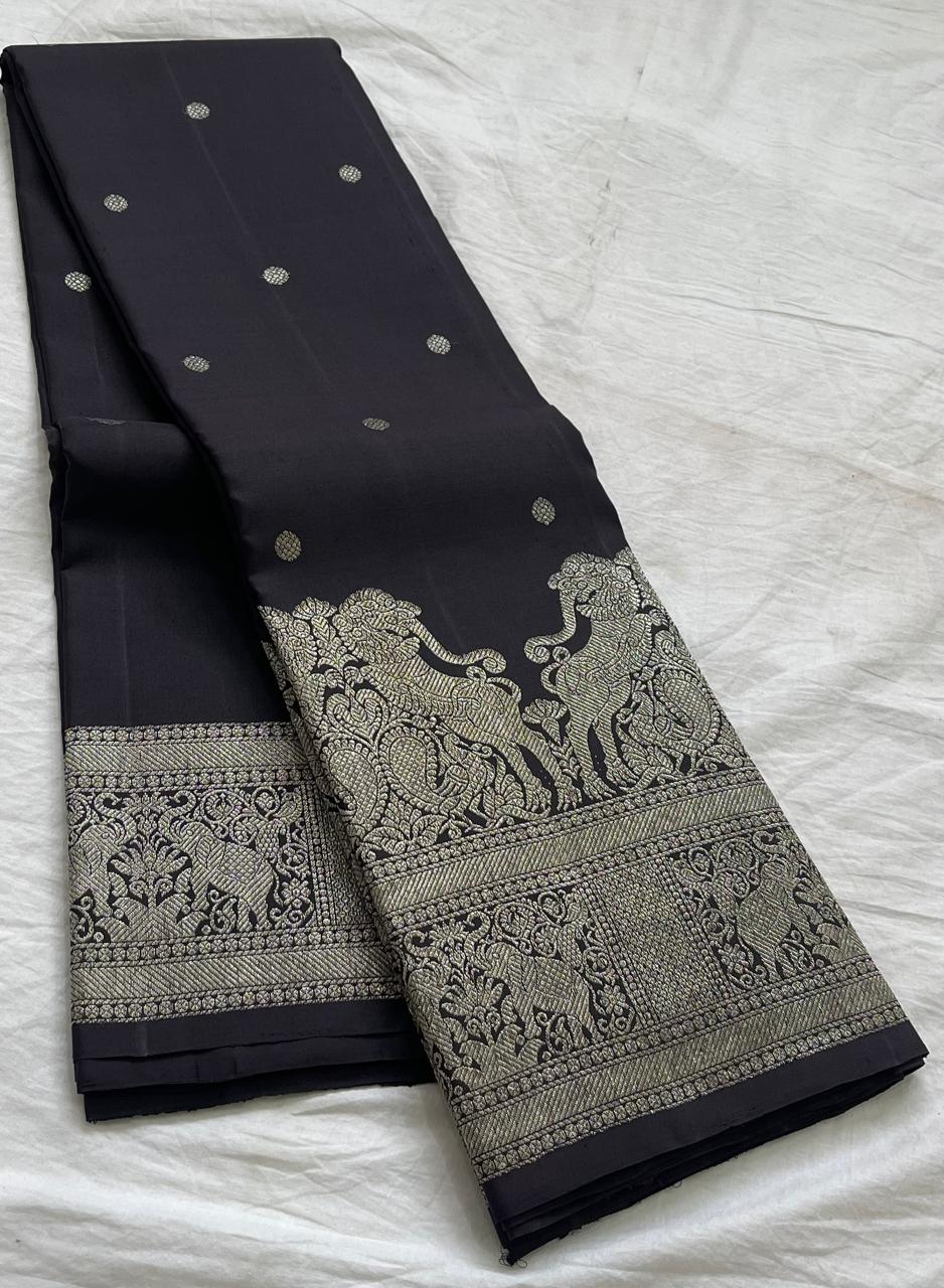 BROWN  COLOUR COMBITION PURE KANCHI SILK SAREE
