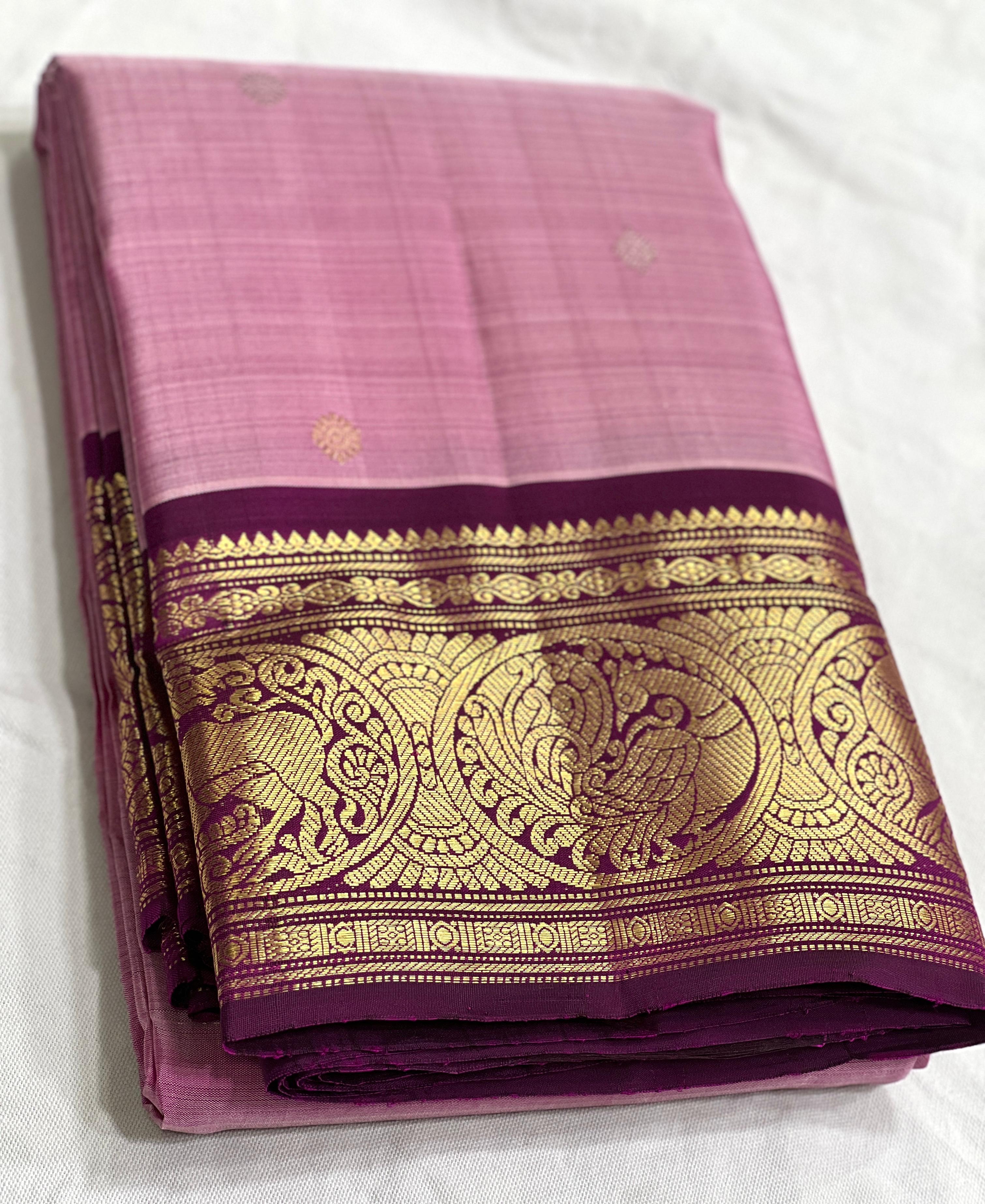 BABY PINK/PURPLE COLOUR ZARI BORDER COMBITION PURE KANCHI SILK SAREE