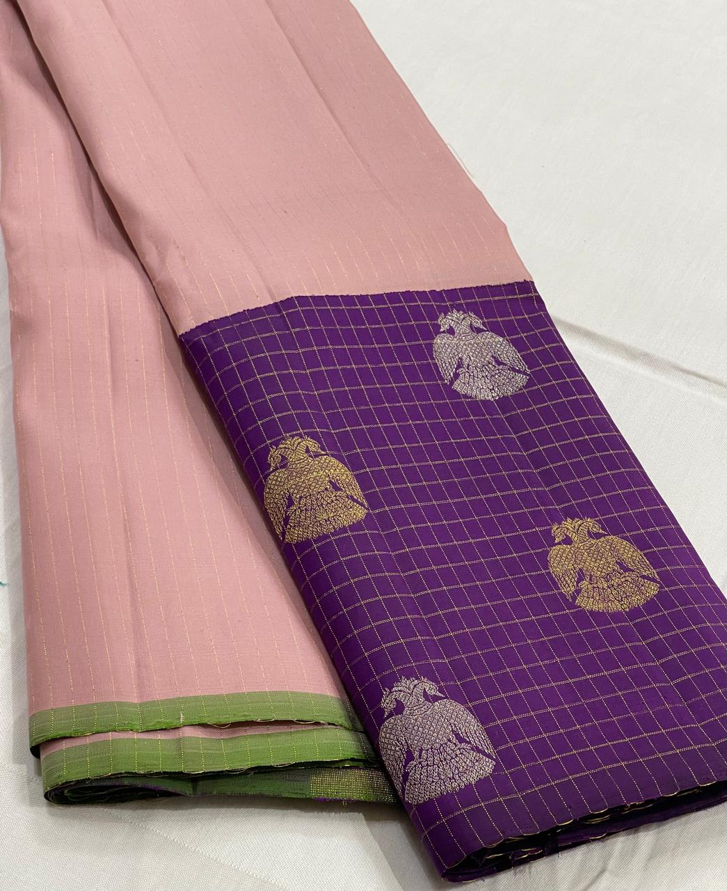 PEACH/VOILET  COLOUR ZARI COMBINITION PURE SILK SAREES