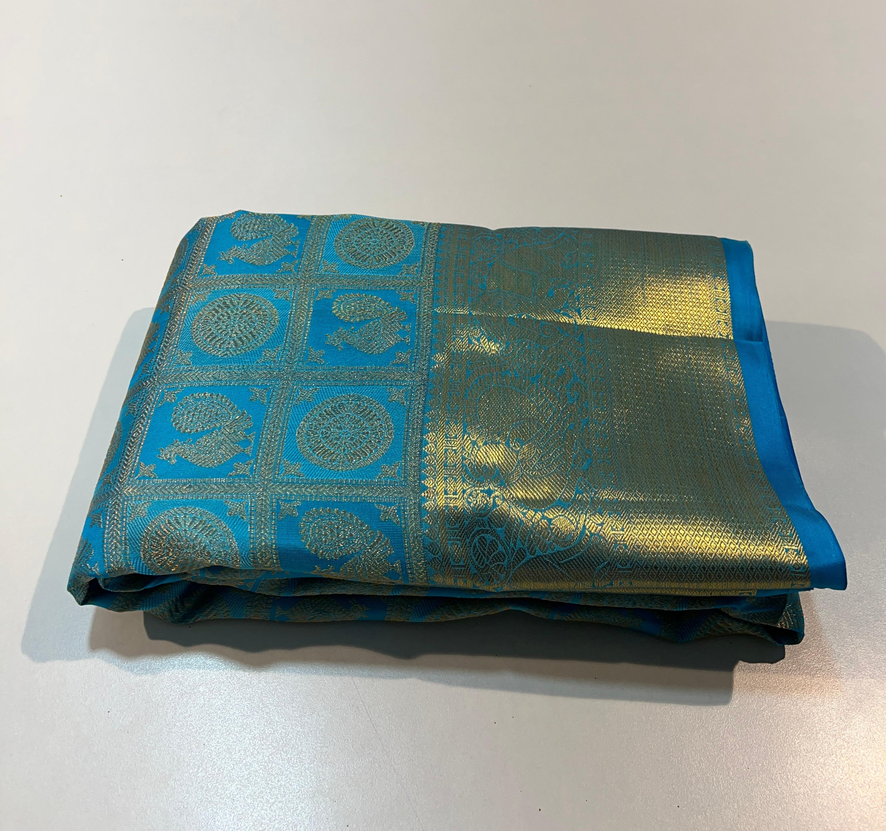 RAMA BLUE  BORDER COMBITION PURE KANCHI SILK SAREE