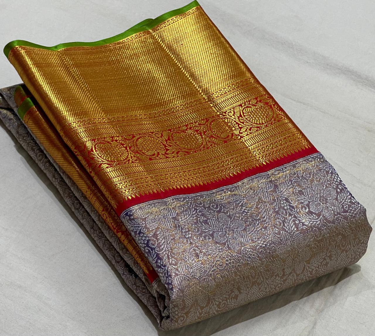 LAVENDER/RED  COLOUR COMBITION PURE KANCHI SILK SAREE