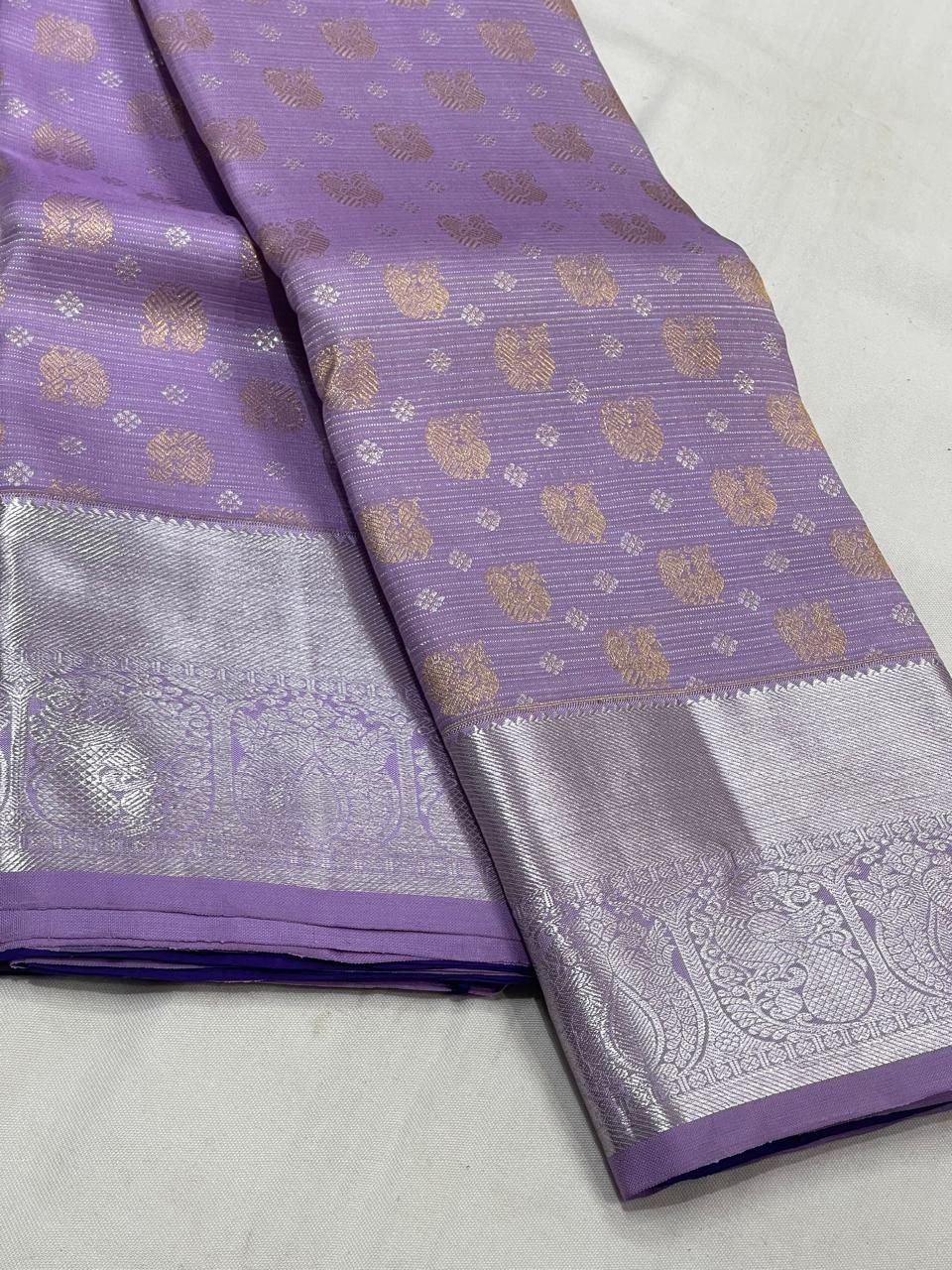 LILAC/NAVY BLUE COLOUR COMBITION PURE KANCHI SILK SAREE