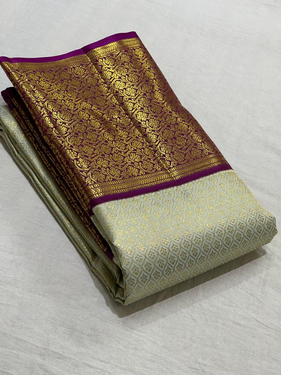LITE PISTA GREEN/PURPLE COMBITION PURE KANCHI SILK SAREE