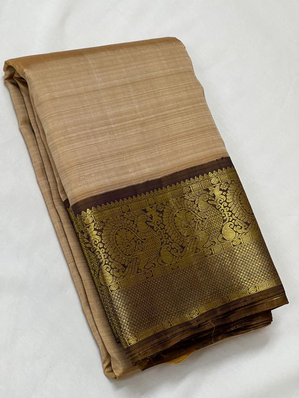 CREAM/BROWN BORDER COLOUR COMBITION PURE KANCHI SILK SAREE