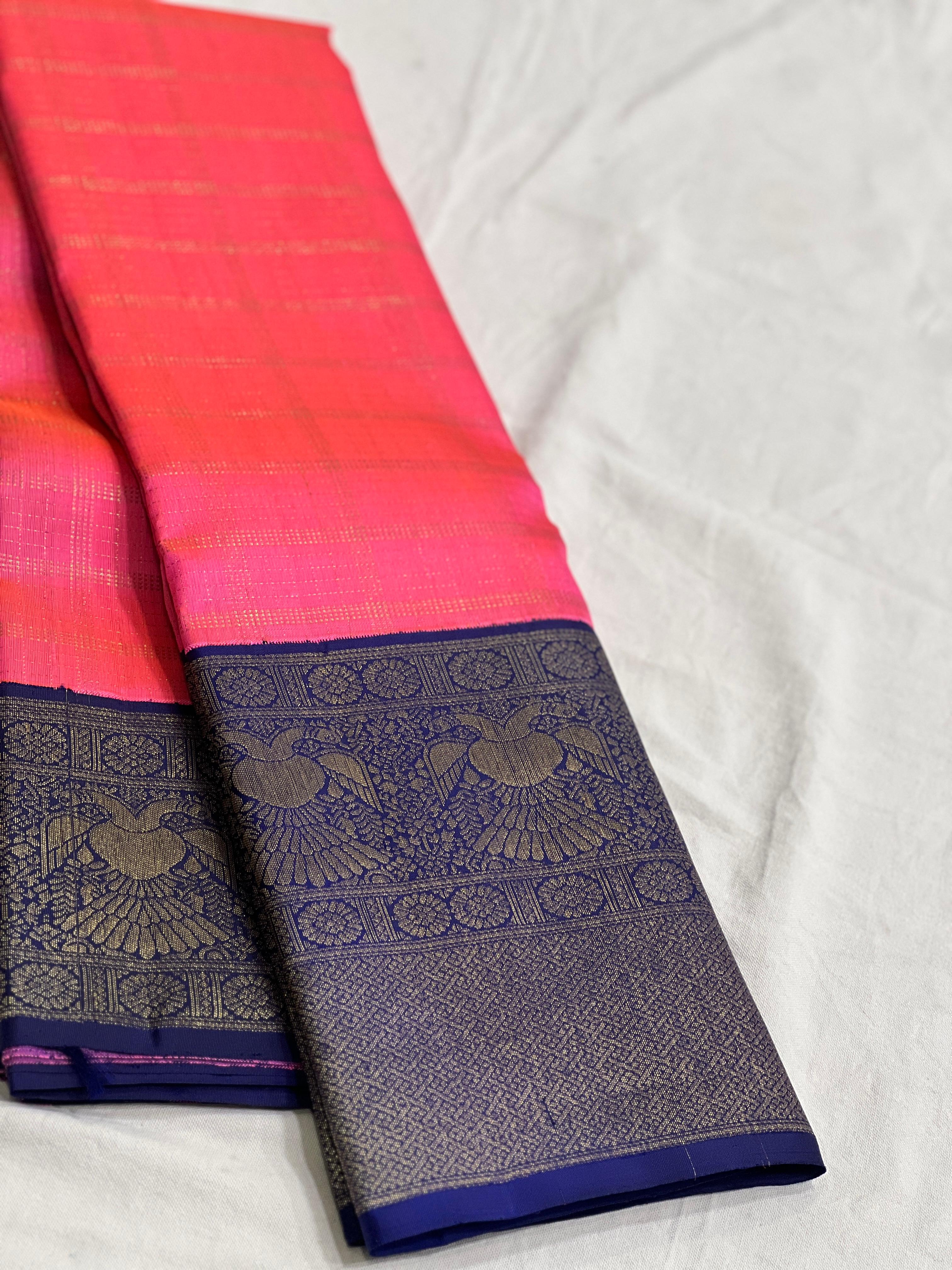 PINK/NAVY BLUE COMBITION PURE KANCHI SILK SAREE