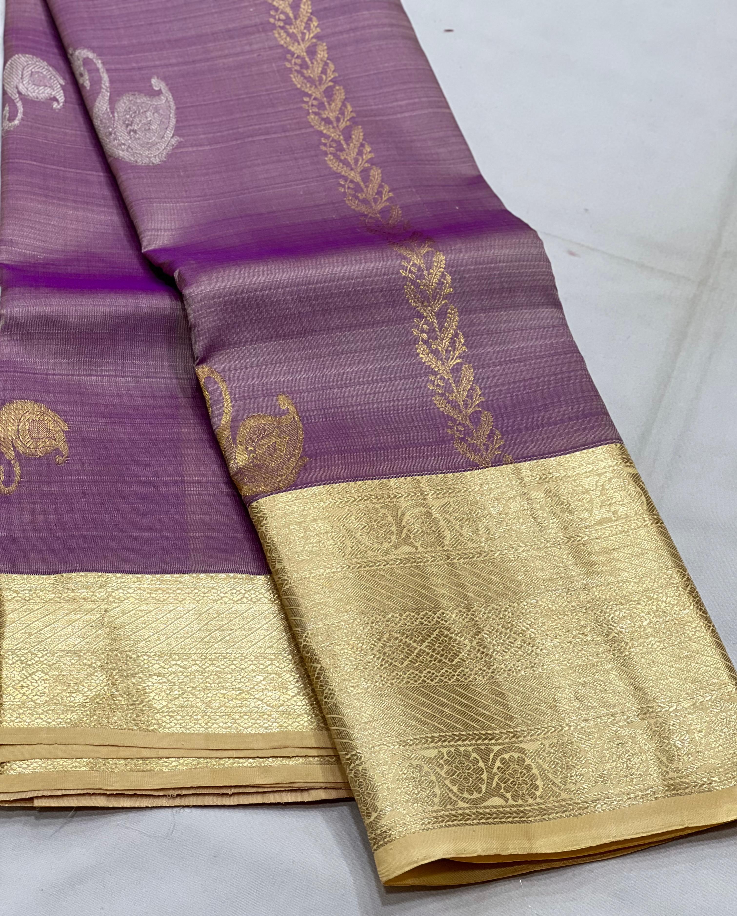 PURPL E/CREAM BORDER COMBITION PURE KANCHI SILK SAREE