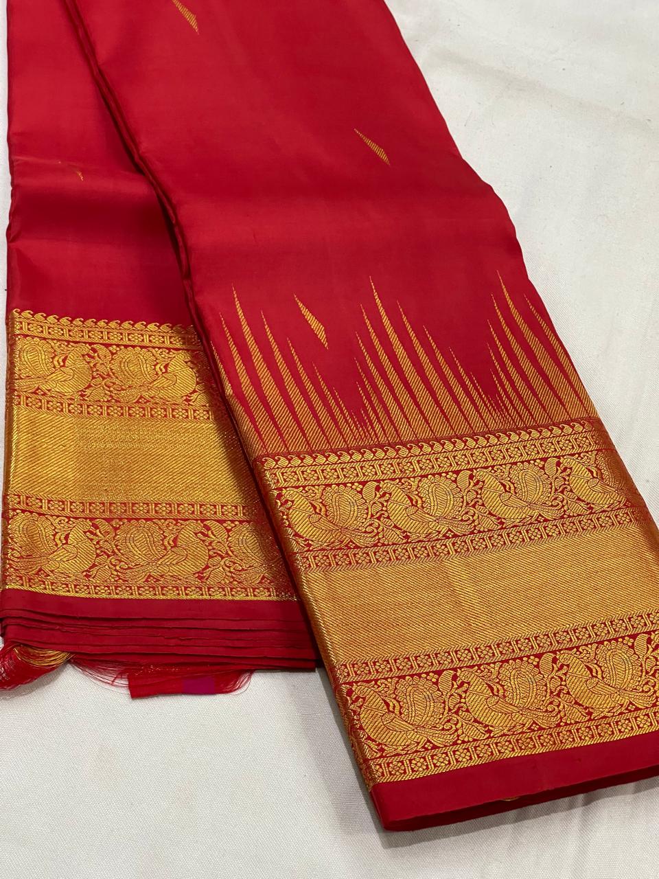 RED/GOLD BORDER COLOUR COMBITION PURE KANCHI SILK SAREE