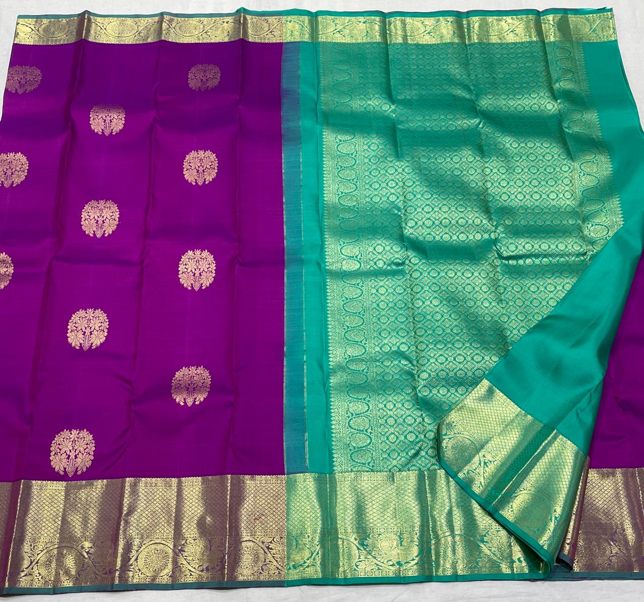 PURPLE/TORQUISE GREEN COMBITION PURE KANCHI SILK SAREE