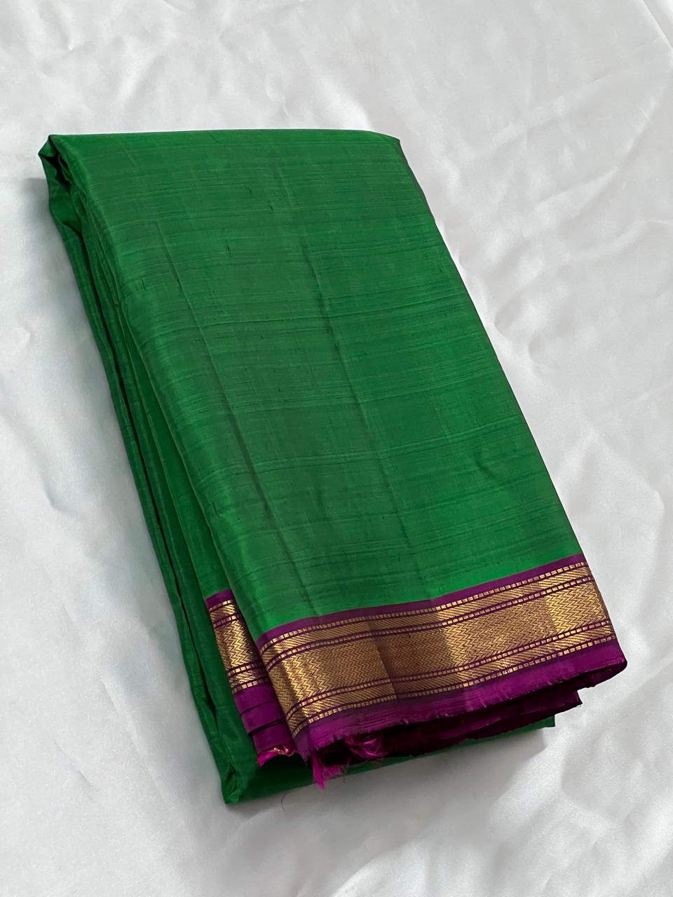 GREEN/PURPLE BORDER COMBITION PURE KANCHI SILK SAREE