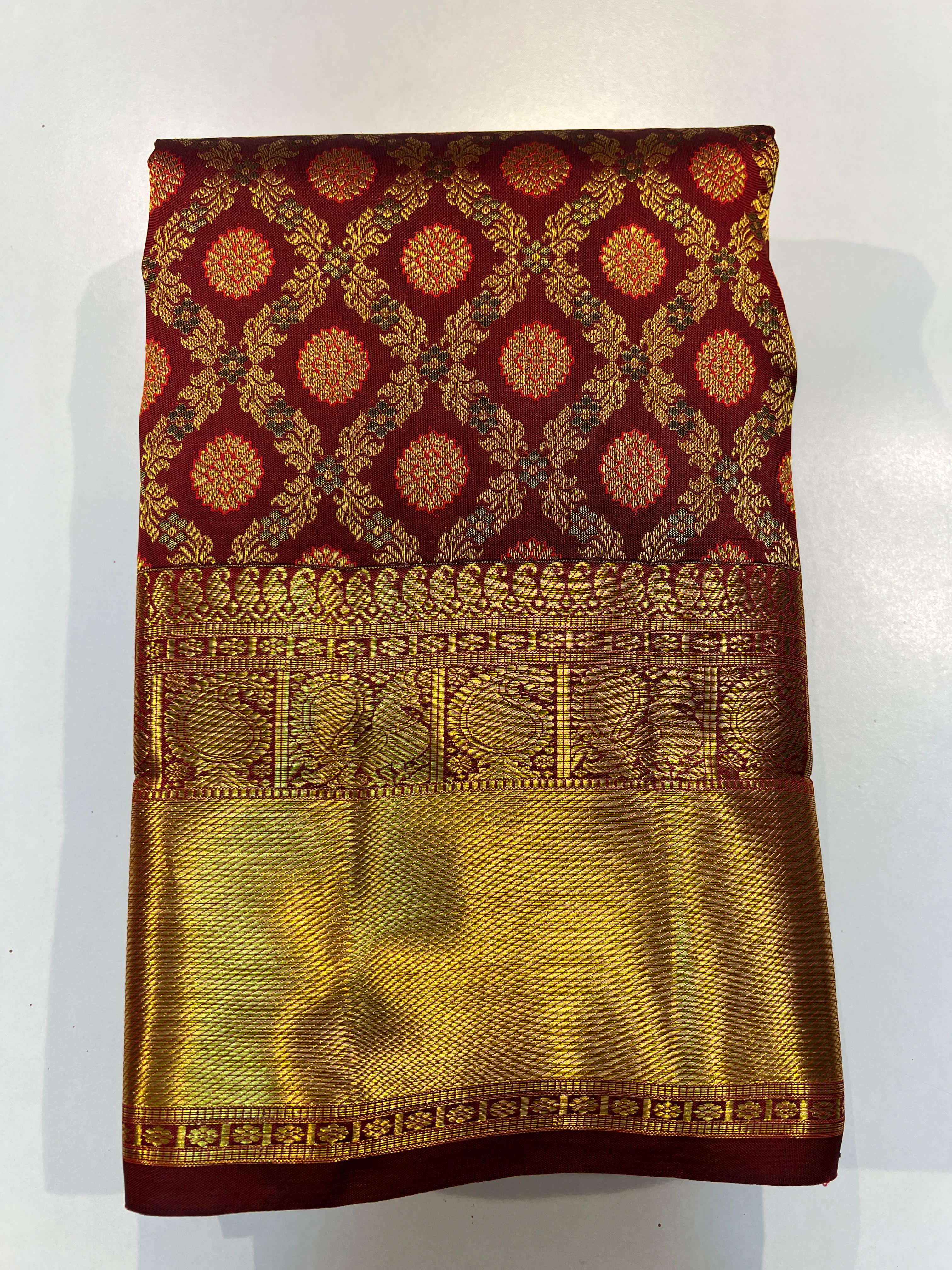 2 gram pure zari,Kanchipuram Handloom thread work silk saree with Buttis,